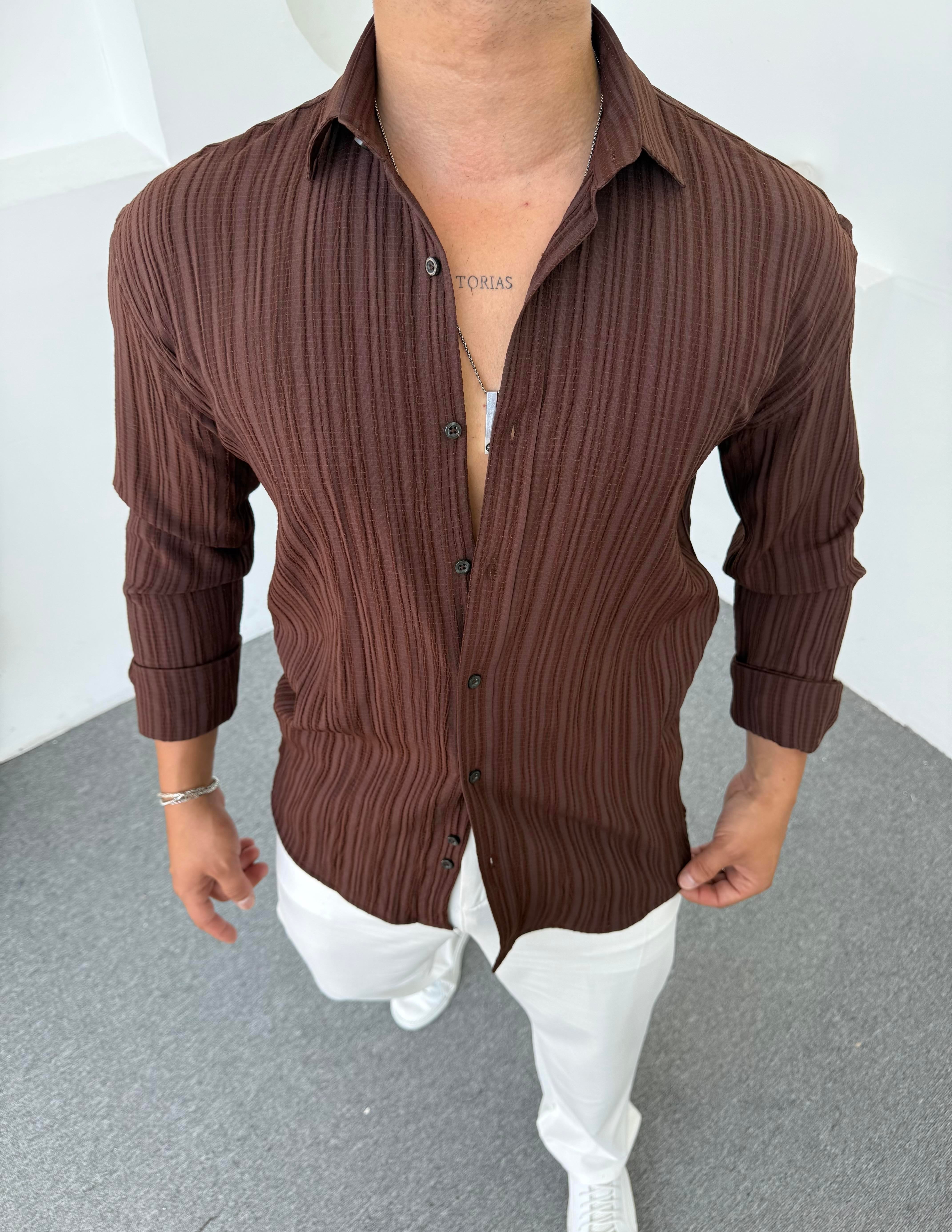 %100 PAMUK KIRIK DESEN GÖMLEK ACI KAHVE