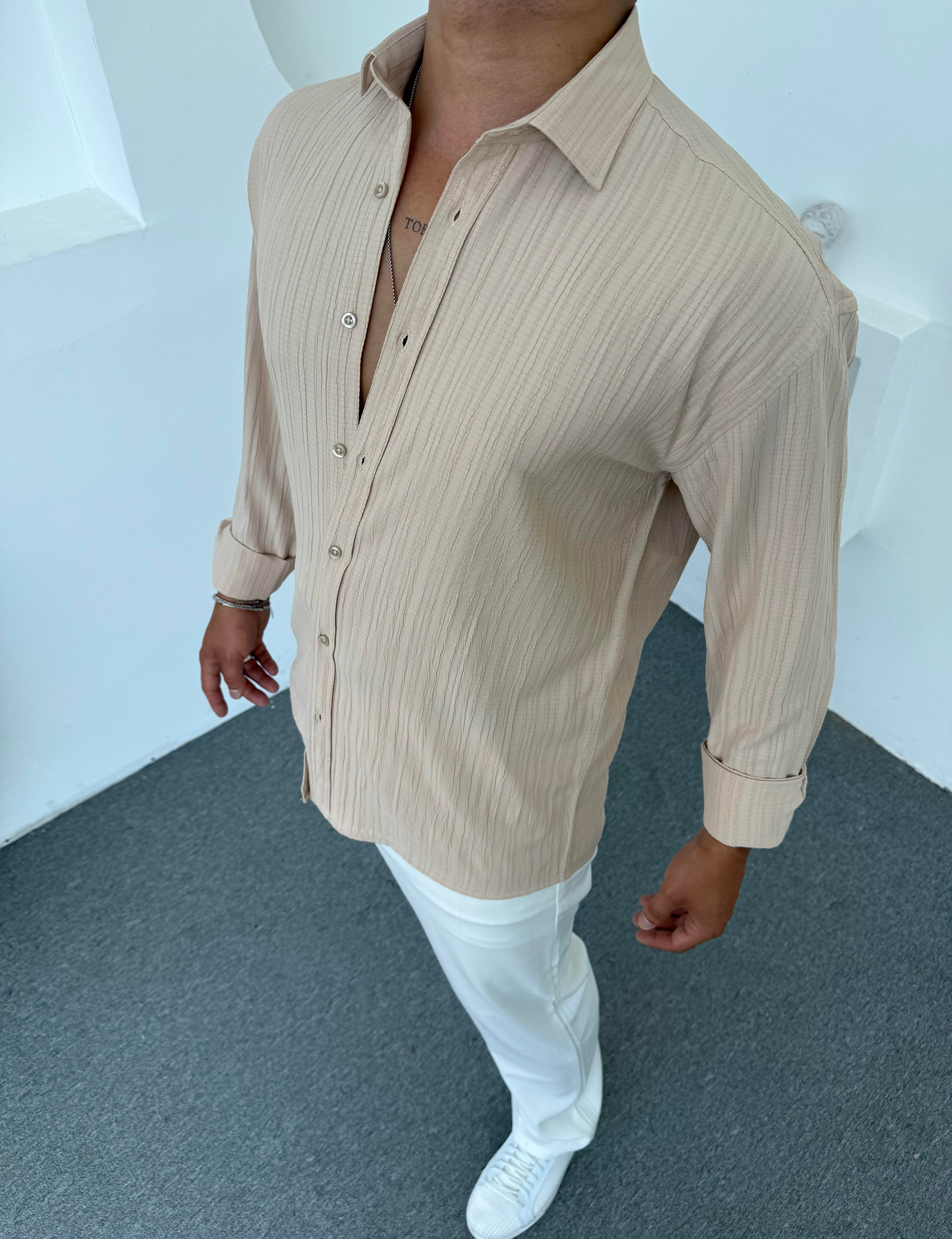 %100 PAMUK KIRIK DESEN GÖMLEK KREM