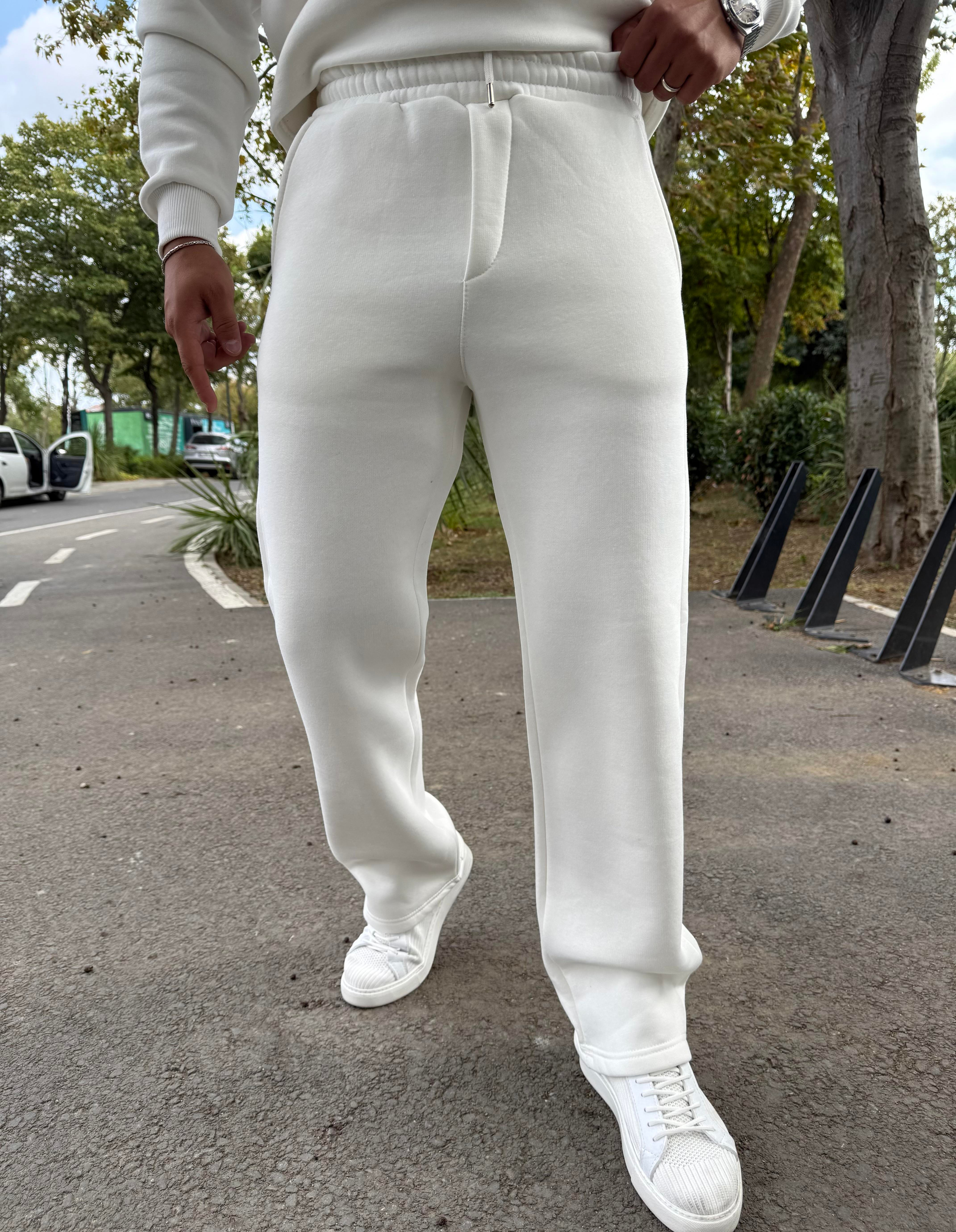 3 İPLİK ŞARDONLU BAGGY KALIP PANTOLON BEYAZ