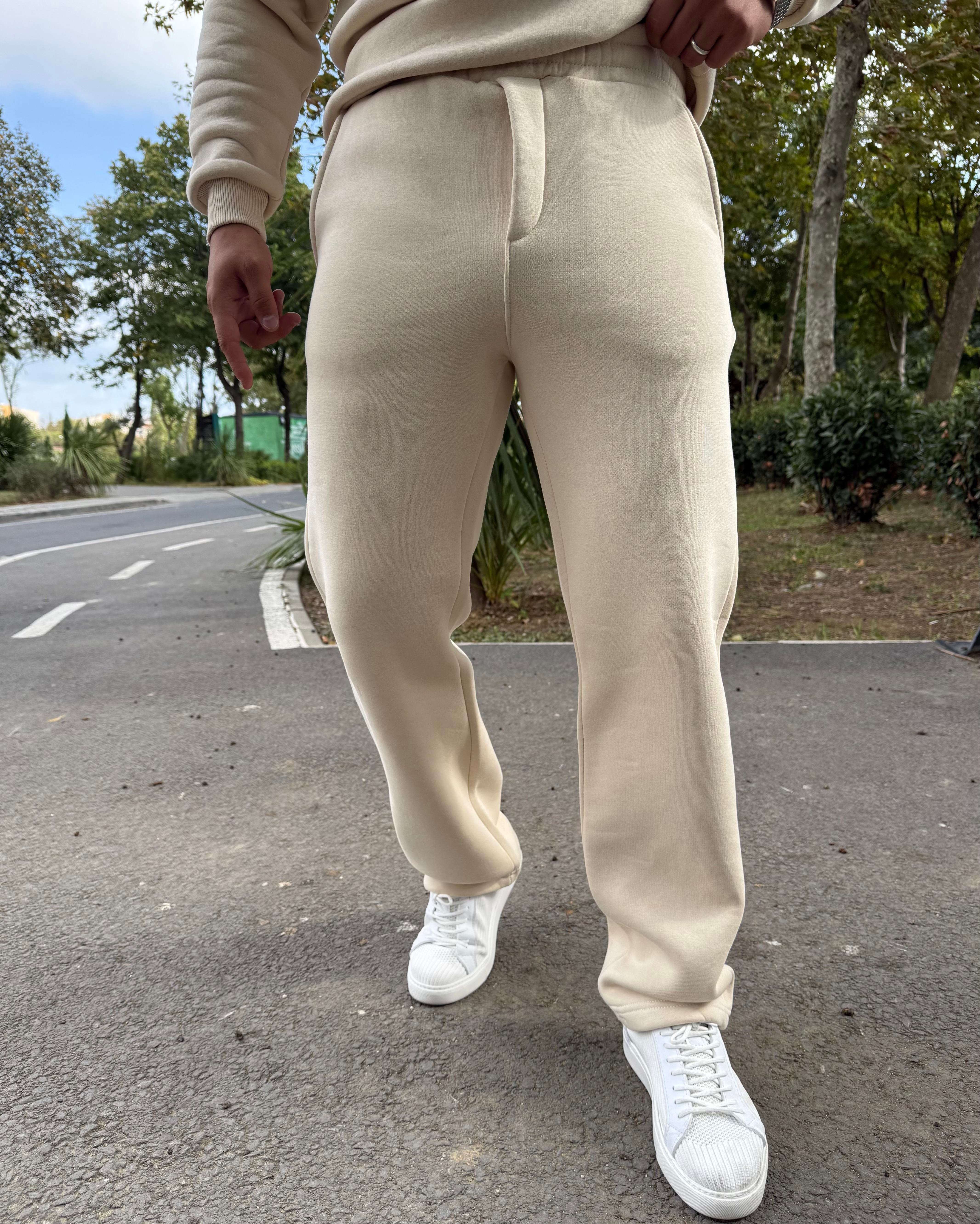 3 İPLİK ŞARDONLU BAGGY KALIP PANTOLON KREM