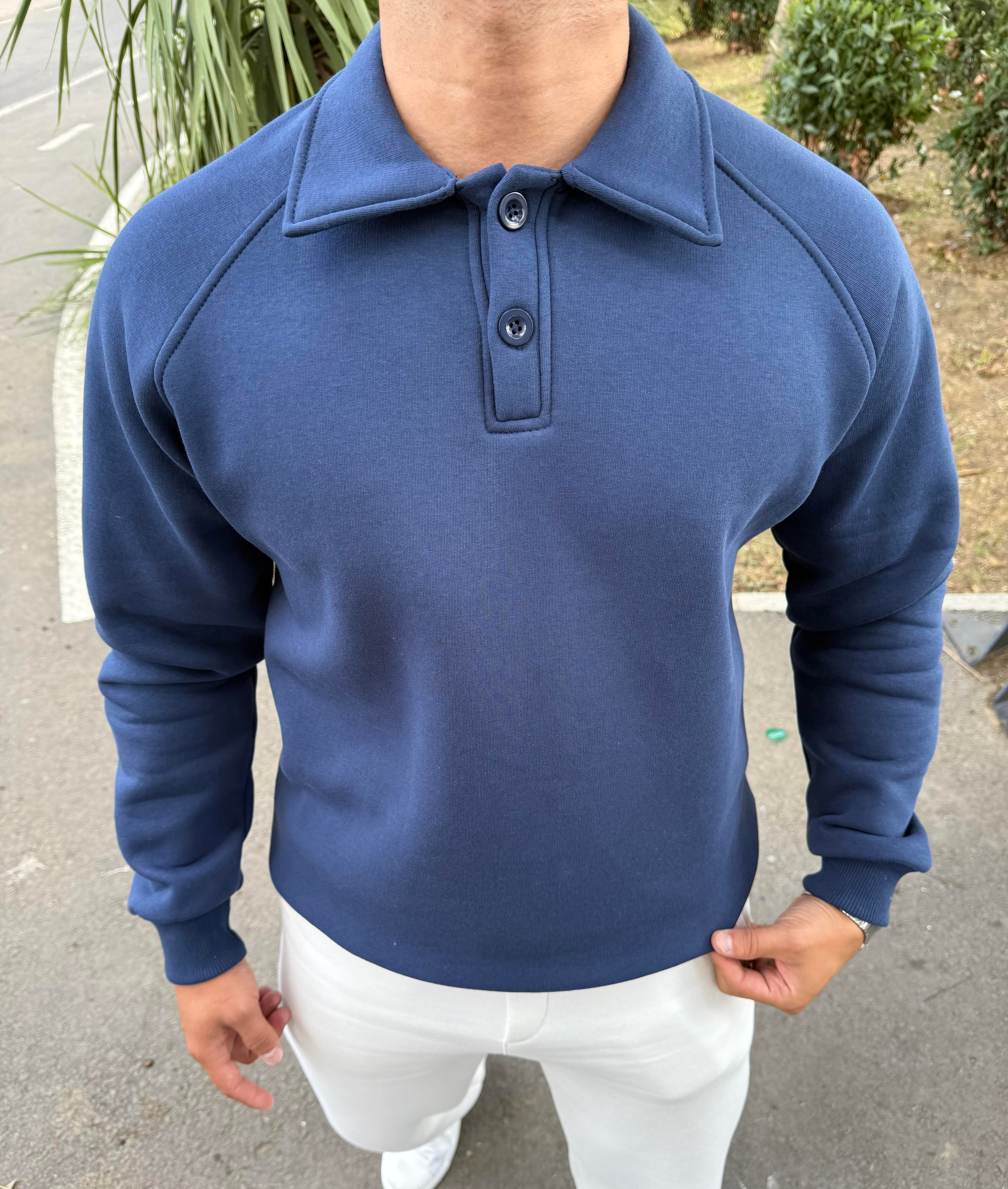 3 İPLİK ŞARDONLU POLO YAKA SWEATSHİRT LACİVERT