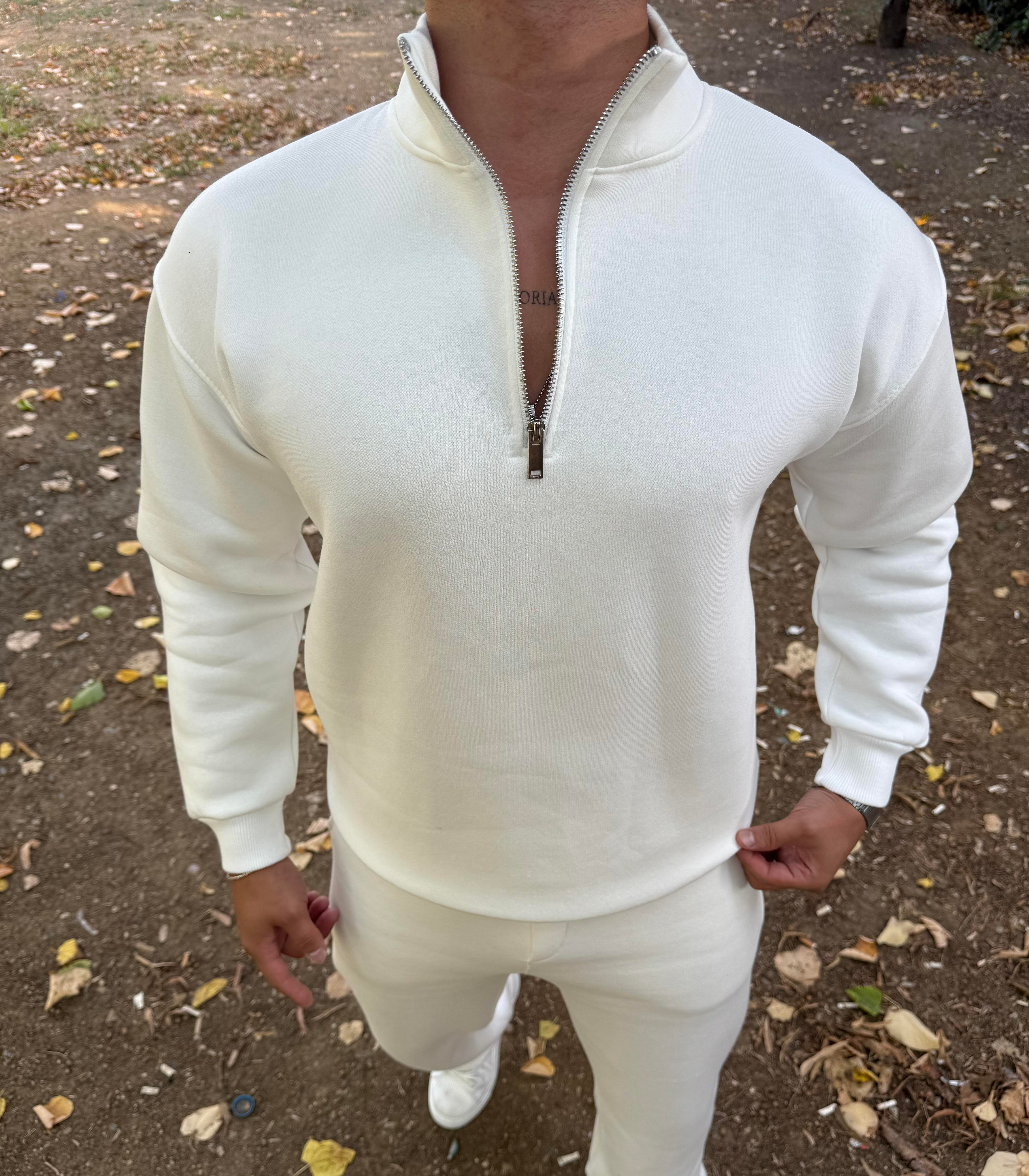 3 İPLİK ŞARDONLU YARIM FERMUAR SWEATSHİRT BEYAZ