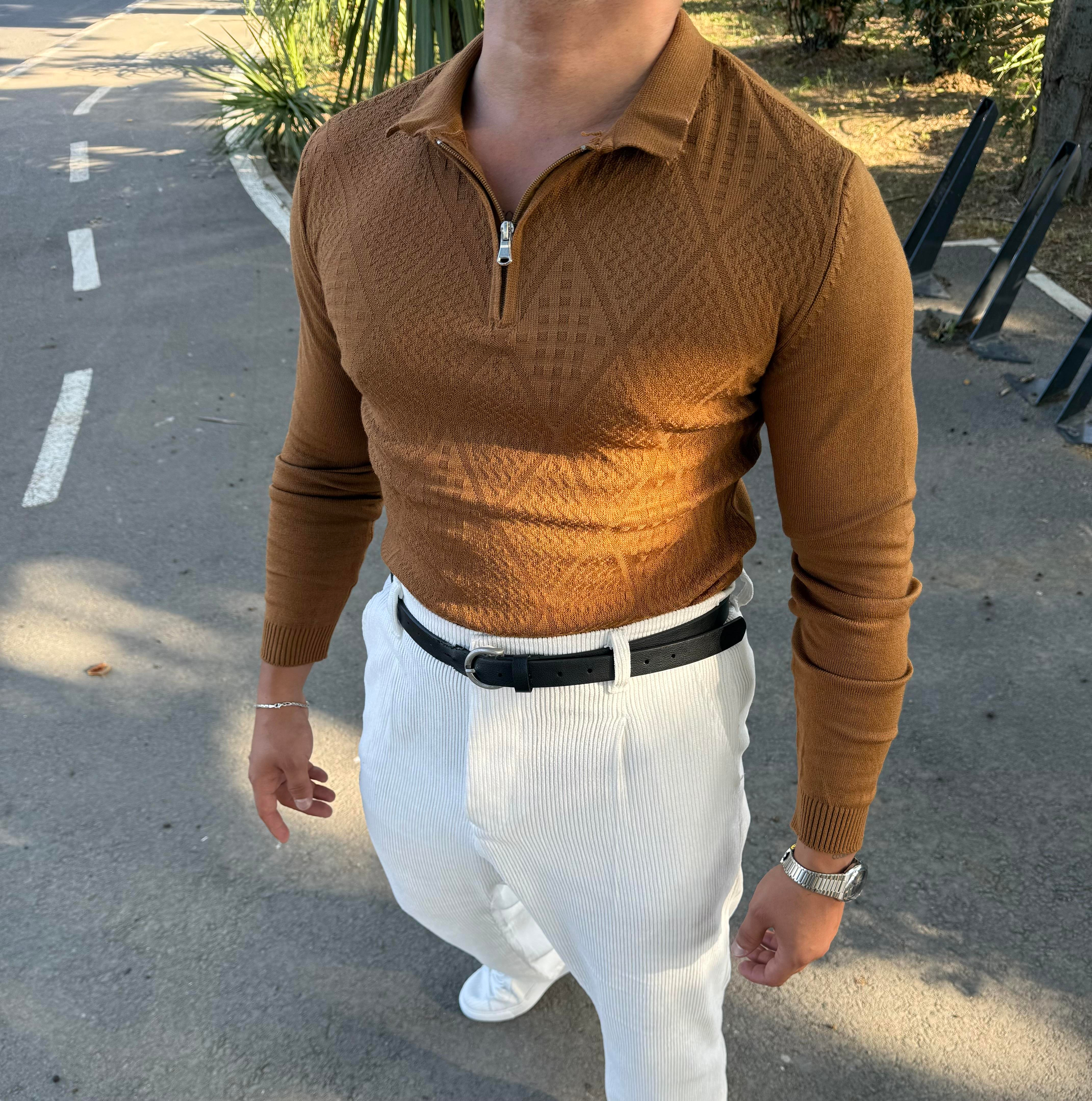 BAKLAVA DESEN YARIM FERMUAR TRİKO KREMİT