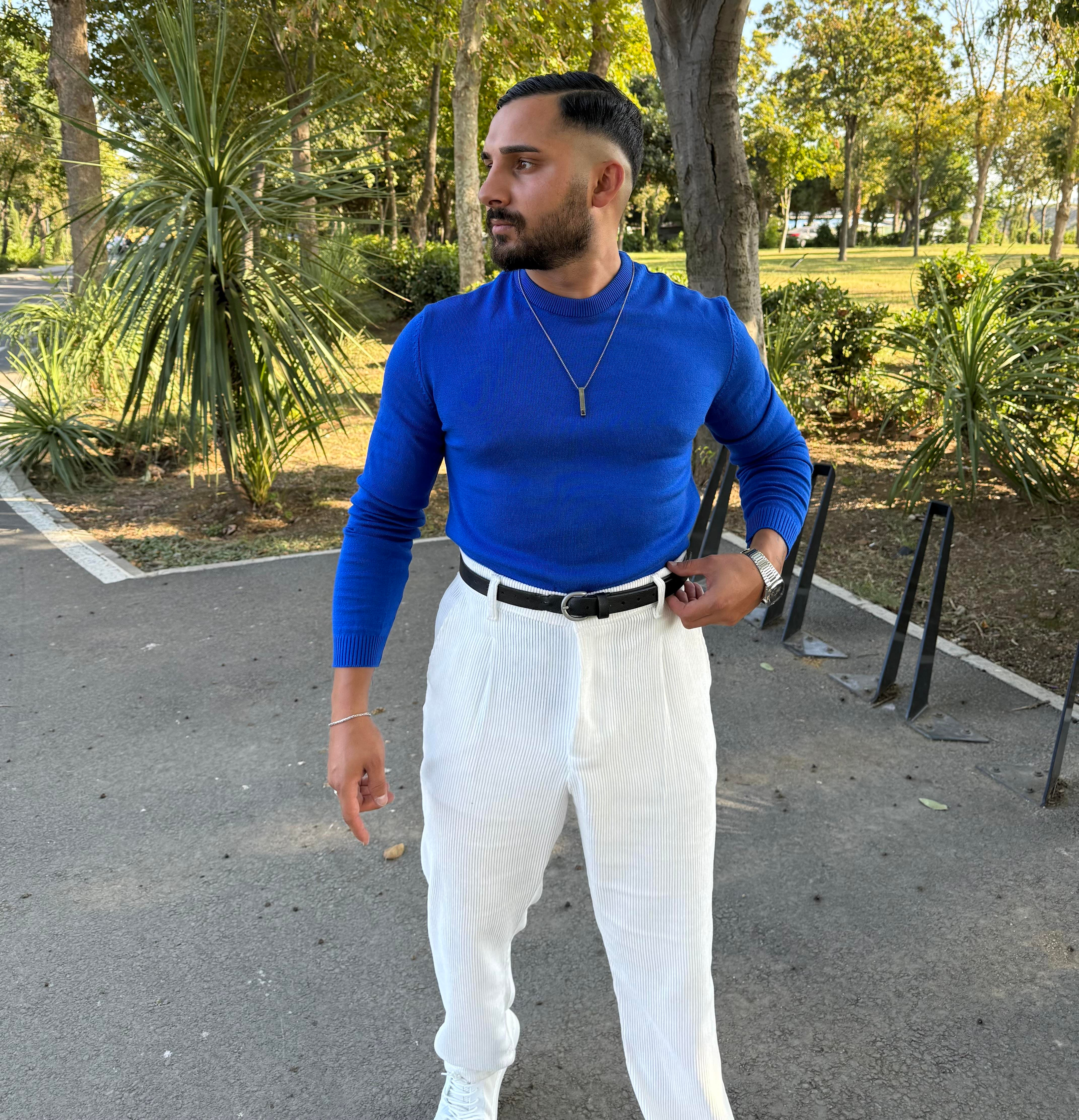 BİSİKLET YAKA TRİKO SWEATSHİRT MAVİ