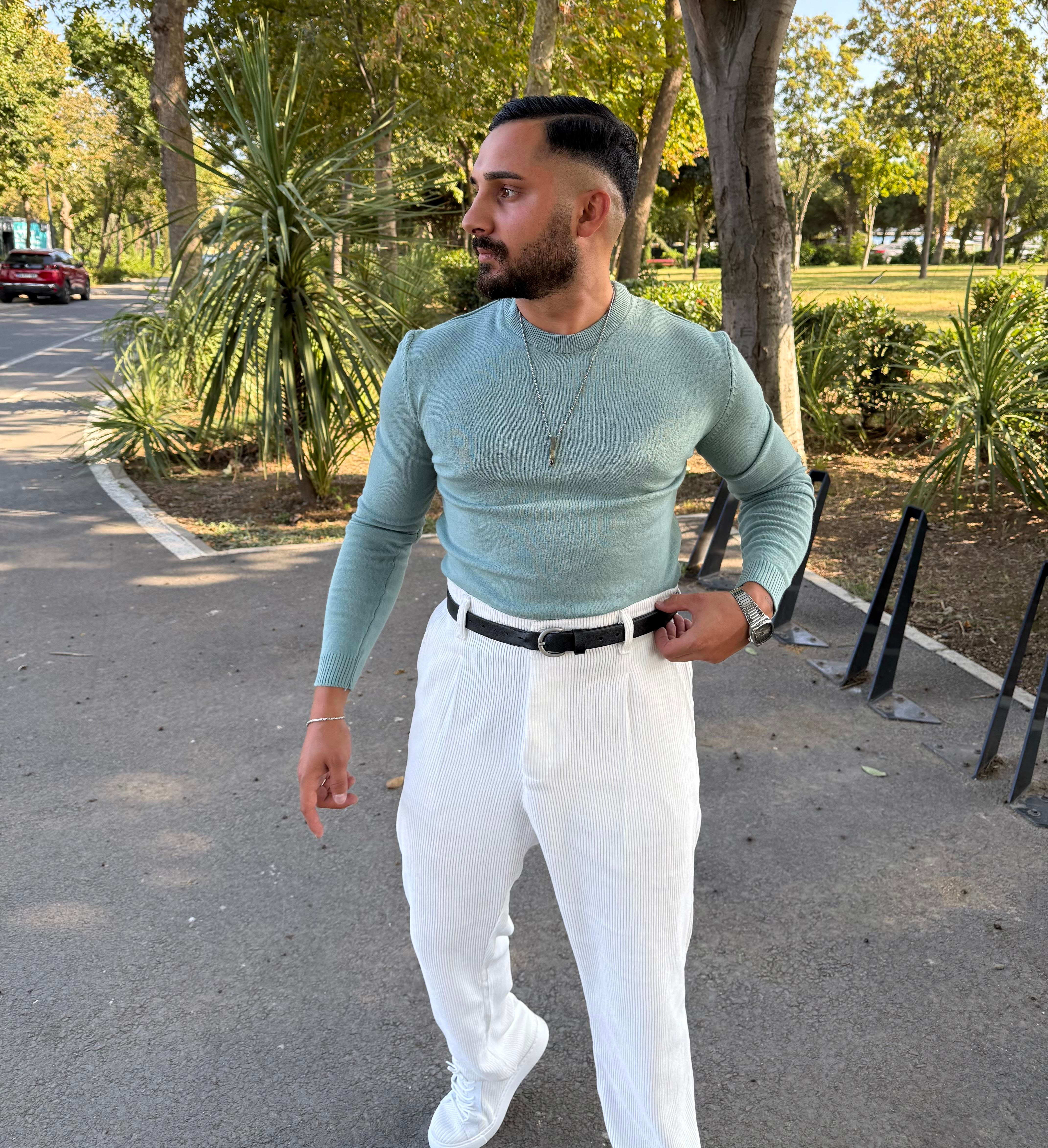 BİSİKLET YAKA TRİKO SWEATSHİRT SU YEŞİLİ