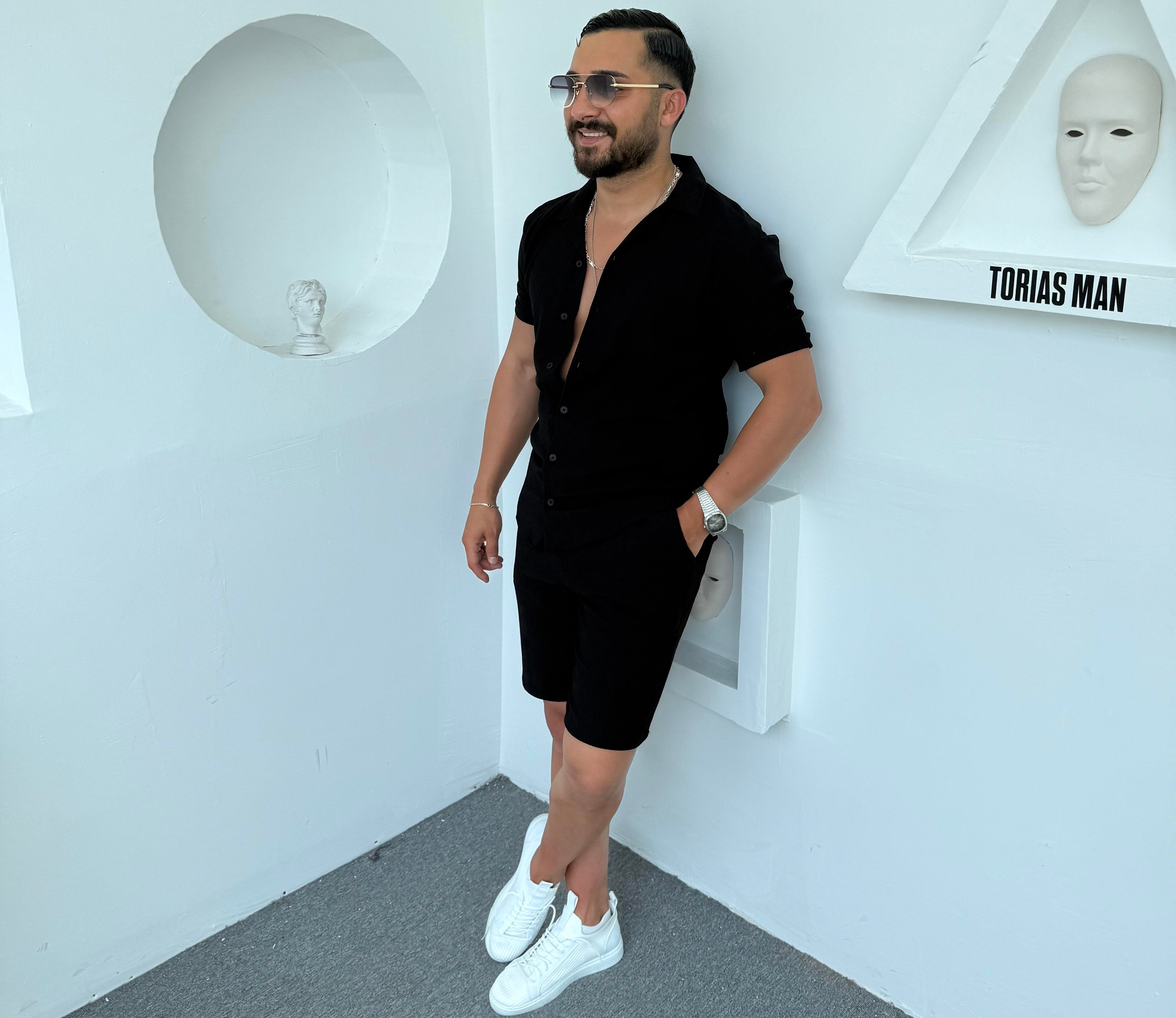 Bürümcük Şortlu Pamuk Takım Siyah