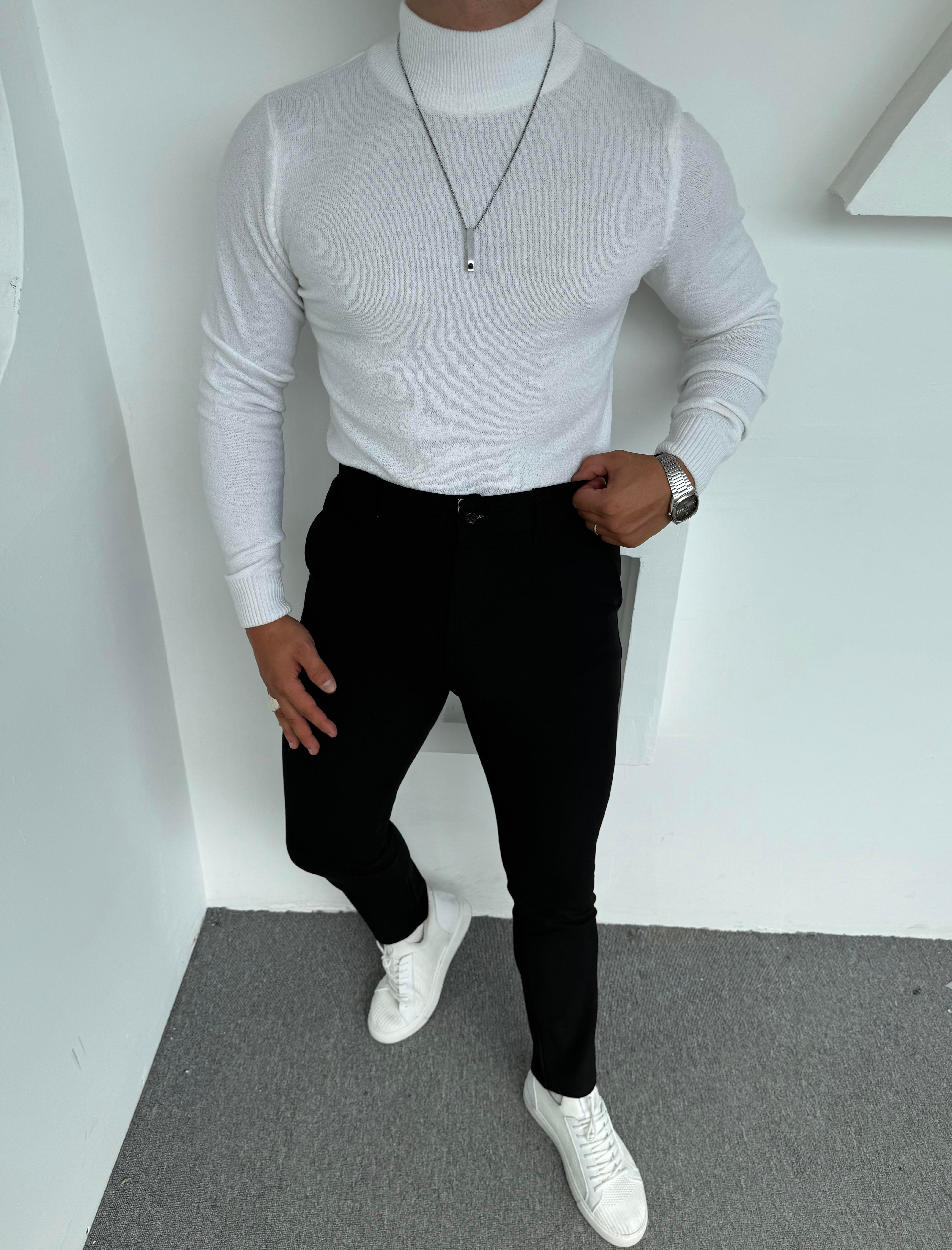 Basic balıkçı yaka triko sweatshirt beyaz Slimfit klasik kumaş pantolon siyah •KAPIDA ÖDEME / ŞEFFAF KARGO * Aa kalite bir kumaştır. •Çekme solma yapmaz. •Manken Boy :173 Kilo 73 m Beden pantolon 32 •4 renk seçeneği mevcuttur. •Bedenler: S M L XL XXL Pantolon 30 31 32 33 34 36 38