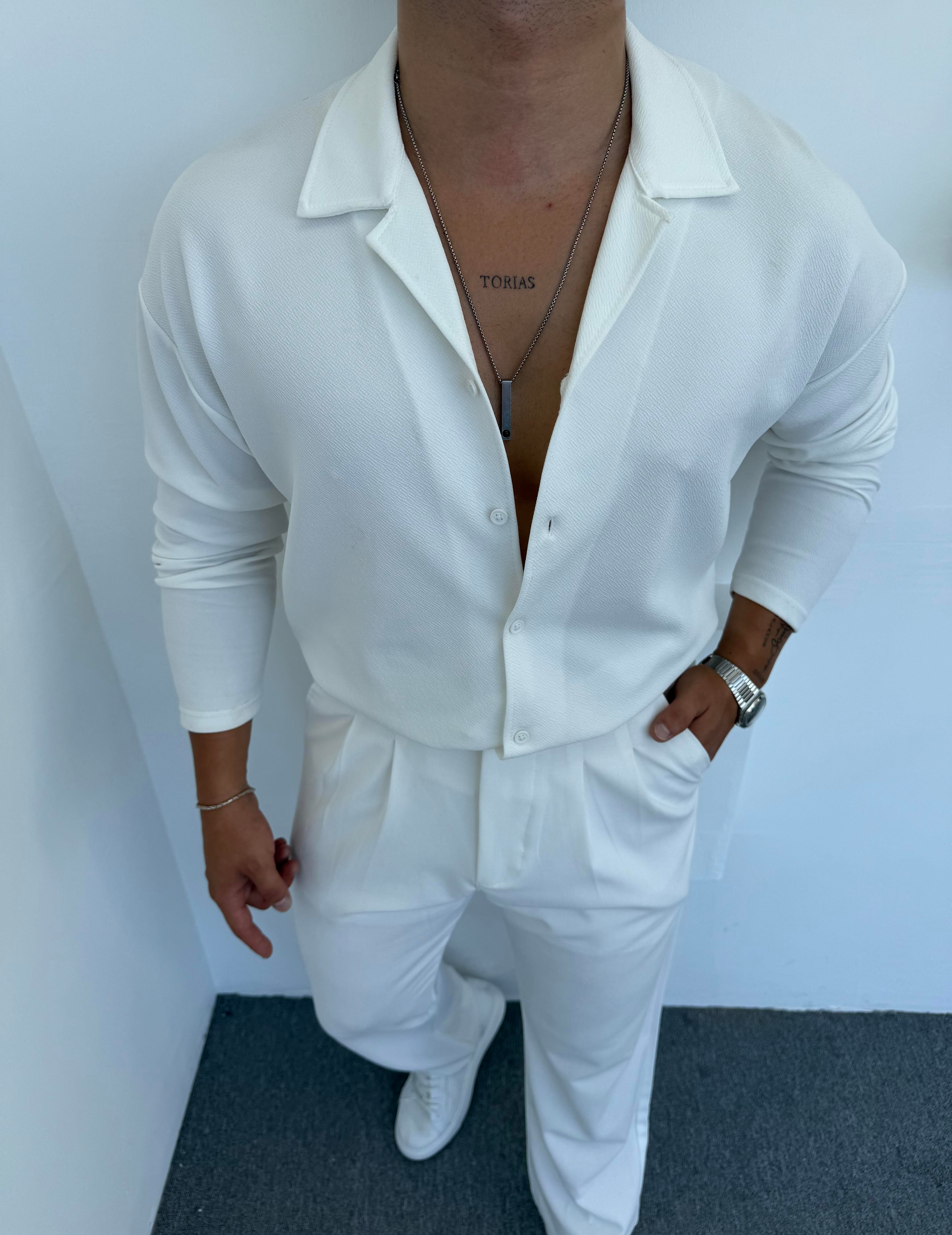 Crap Kumaş Uzun Kol Pamuk Gömlek Beyaz