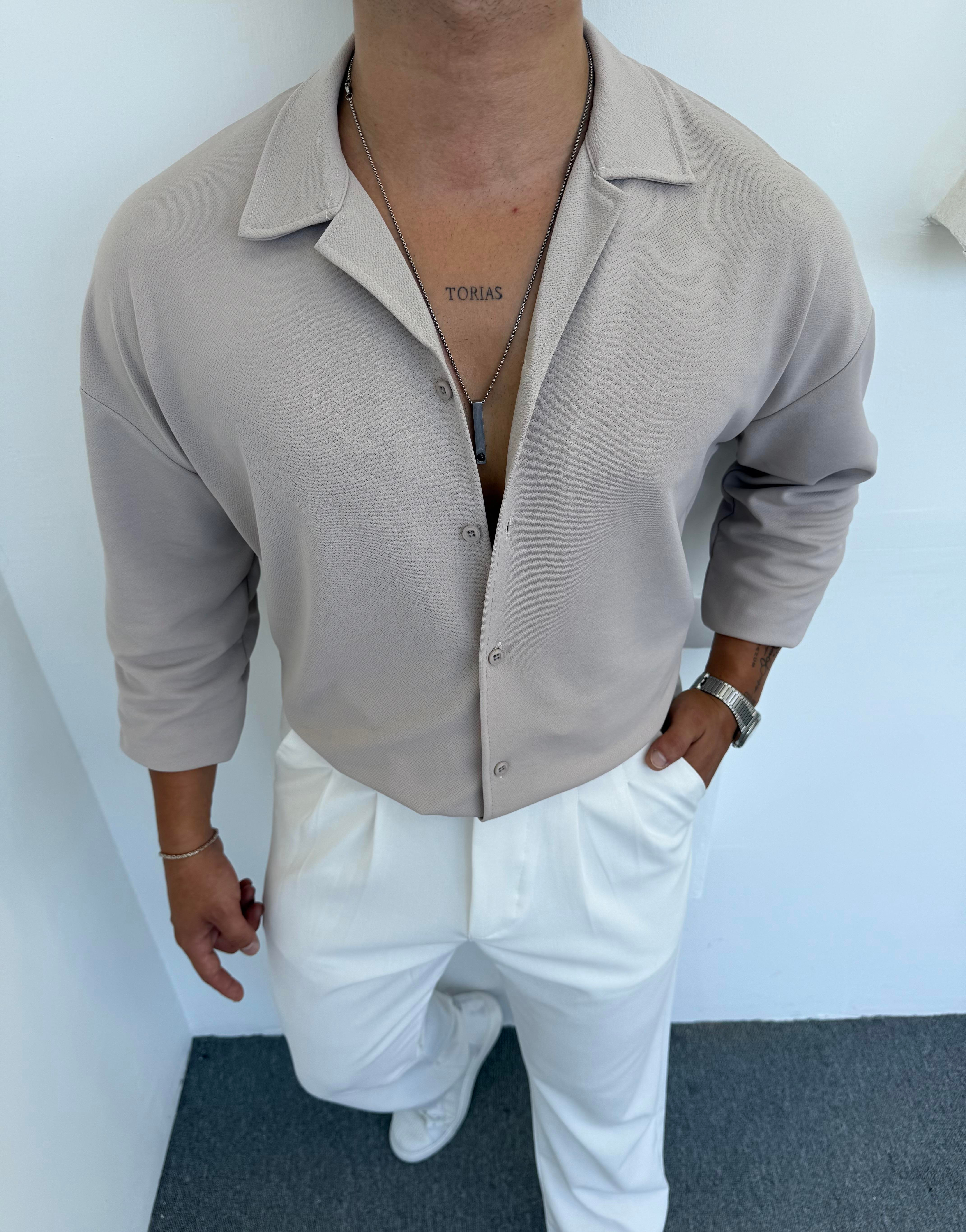 Crap Kumaş Uzun Kol Pamuk Gömlek Gri