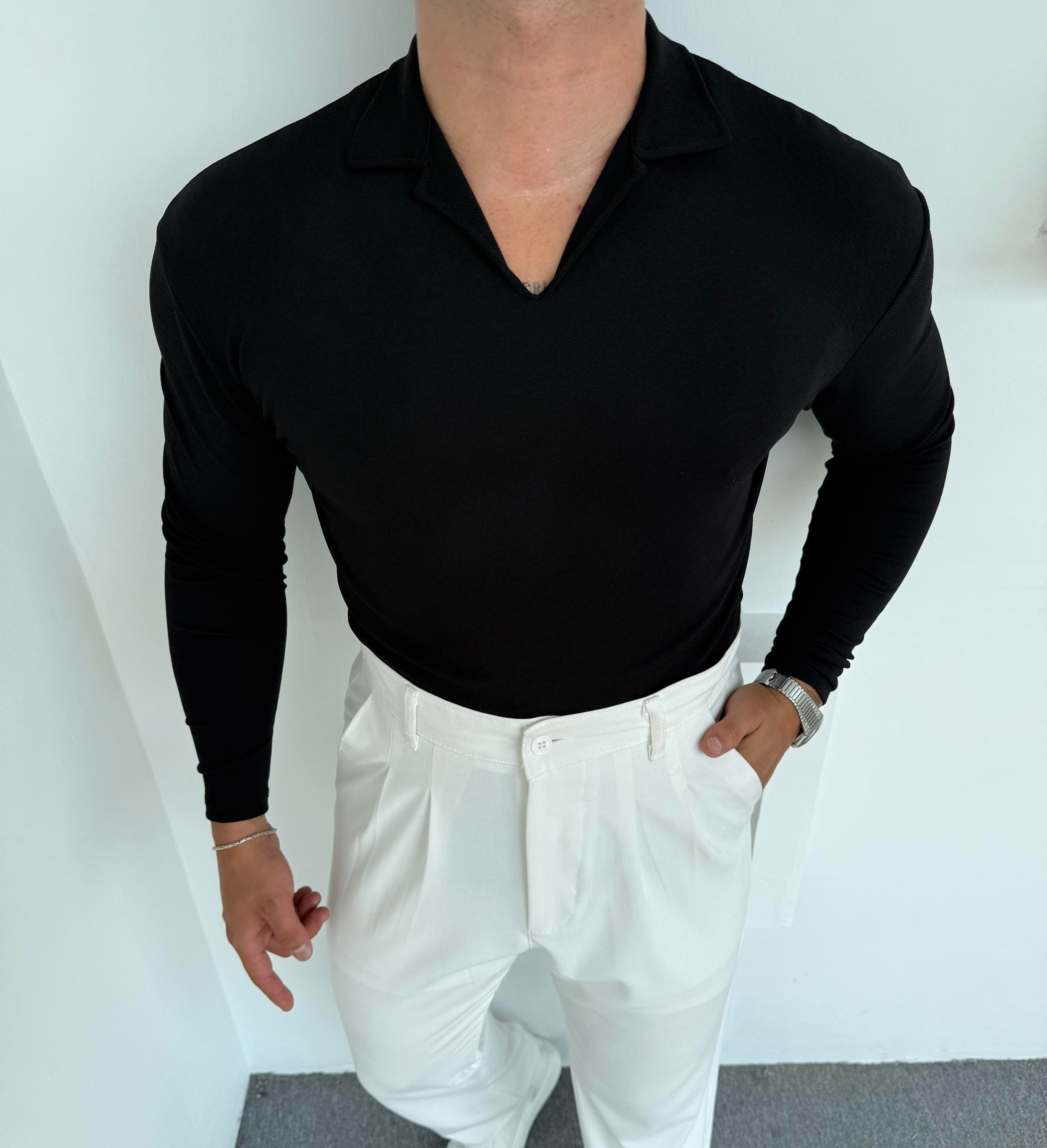 CRAP UZUNKOL HEMŞİRE YAKA SWEATSHİRT SİYAH