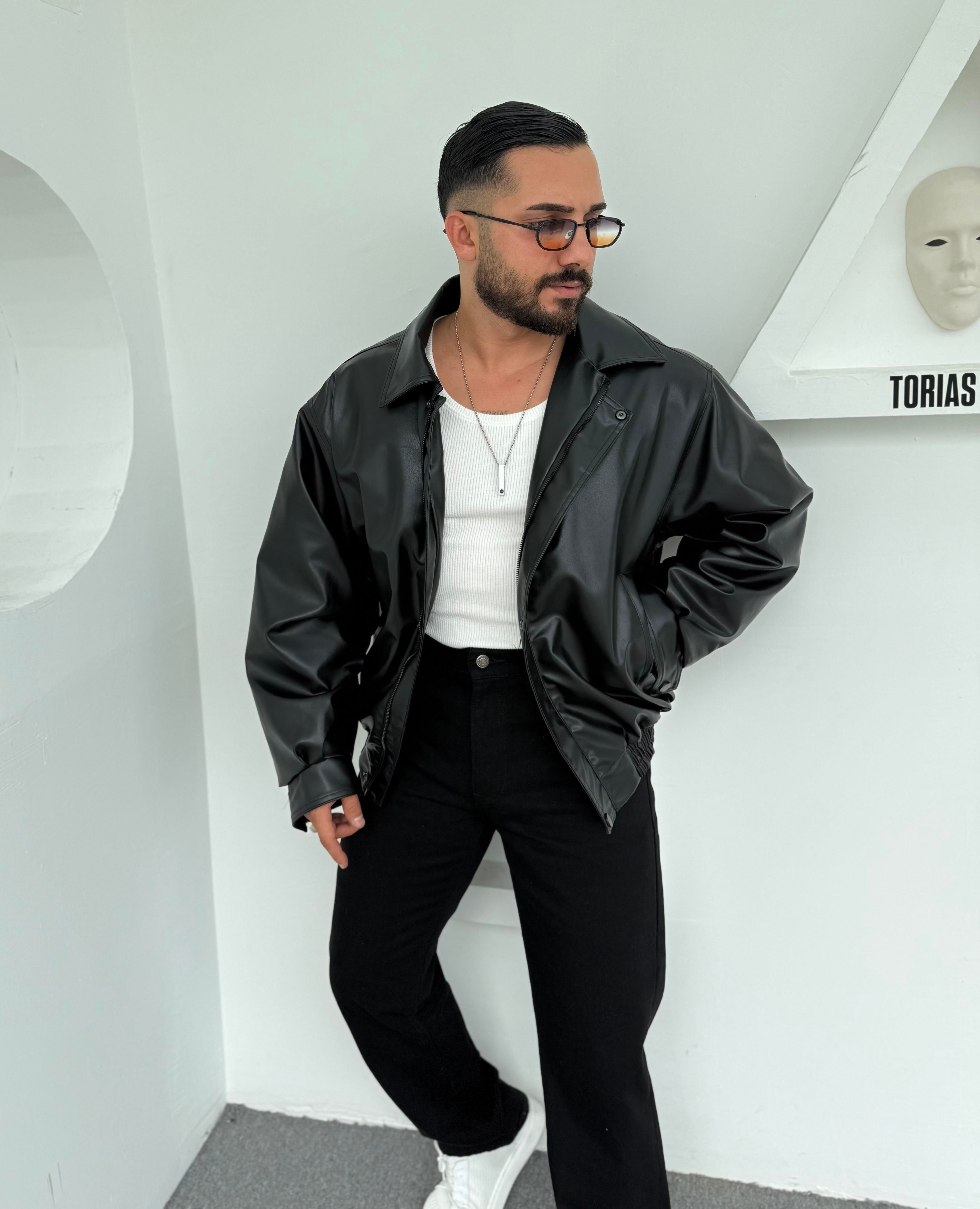 DERİ BOMBER MONT SİYAH