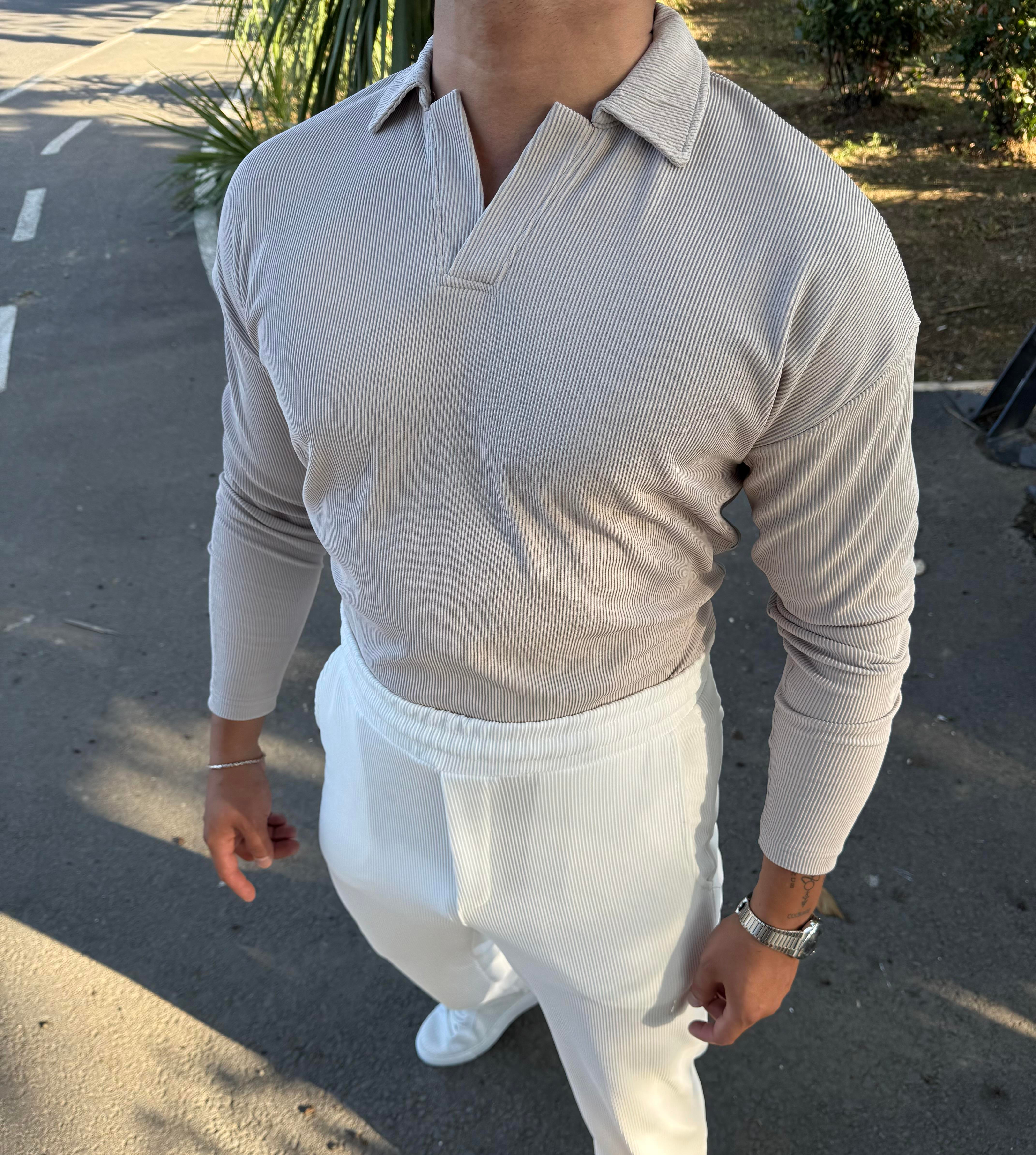 FİTİLLİ POLO YAKA SWEATSHİRT GRİ