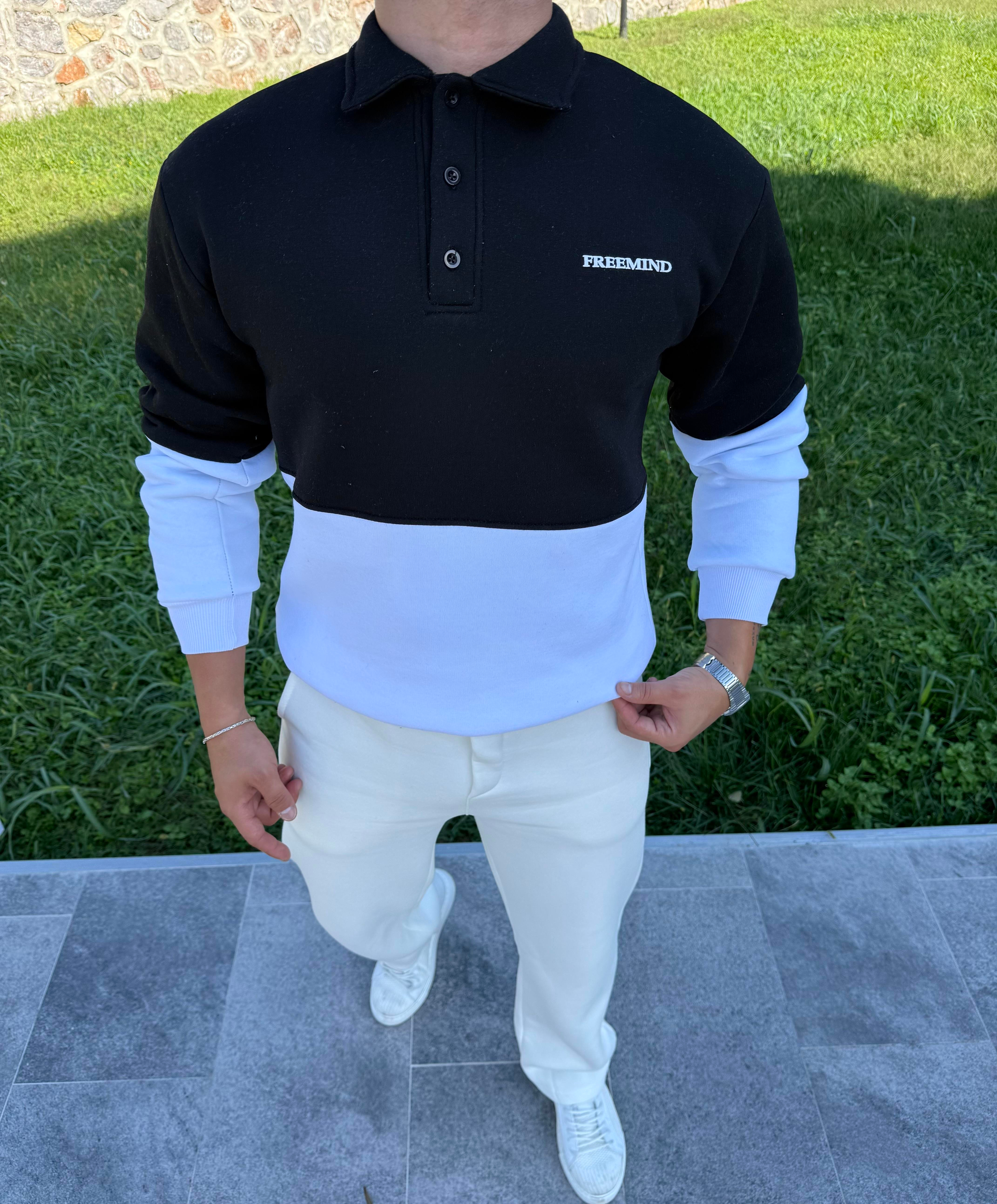 FREEMİND NAKIŞLI 3 İPLİK ŞARDONLU SWEATSHİRT SİYAH