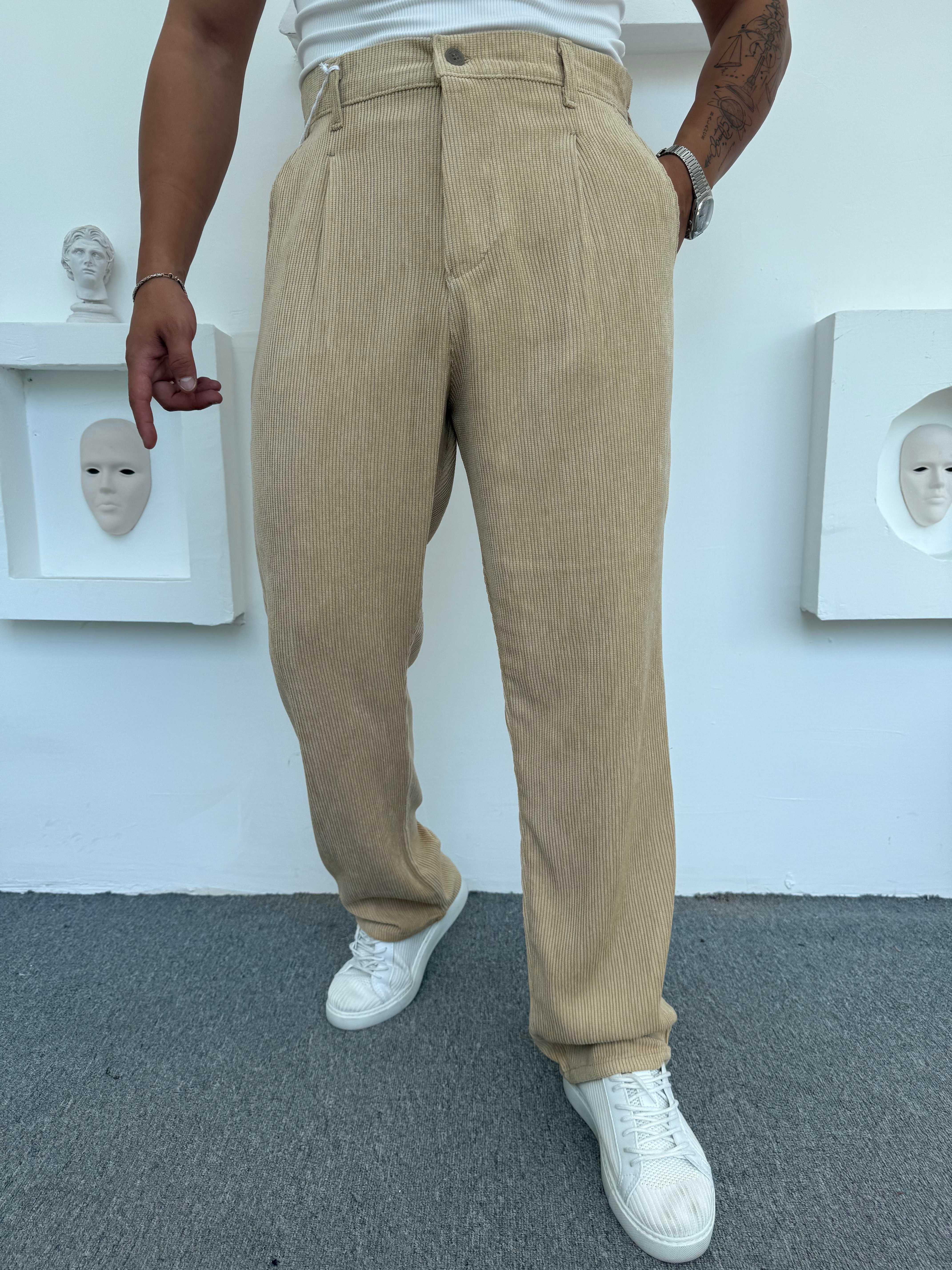 GRAMAJLI BAGGY KALIP KADİFE PANTOLON KREM
