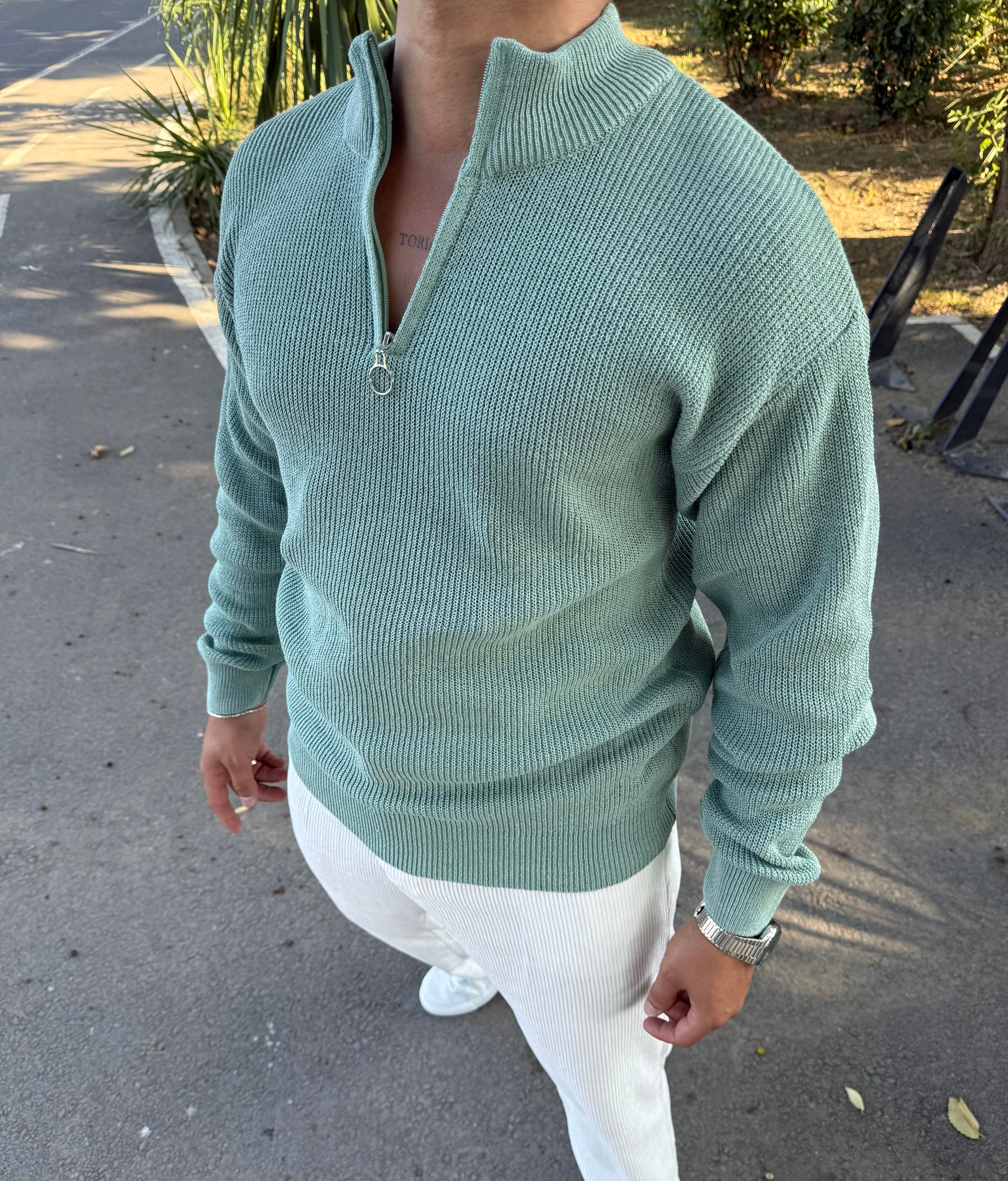 KALIN ÖRGÜ YARIM FERMUAR TRİKO SWEATSHİRT MİNT YEŞİLİ
