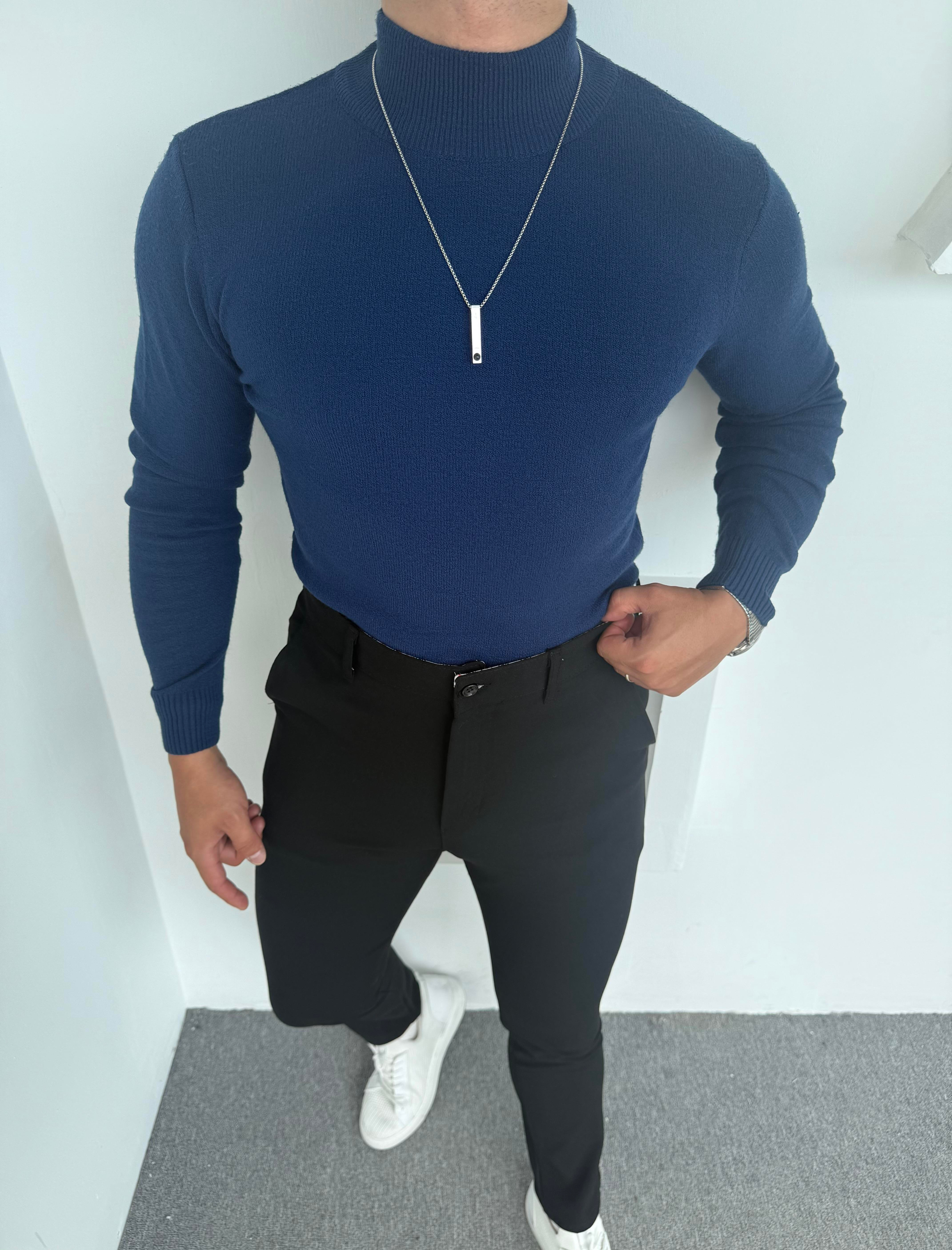 LRD  BASİC İTHAL TRİKO BALIKÇI YAKA SWEATSHİRT LACİVERT