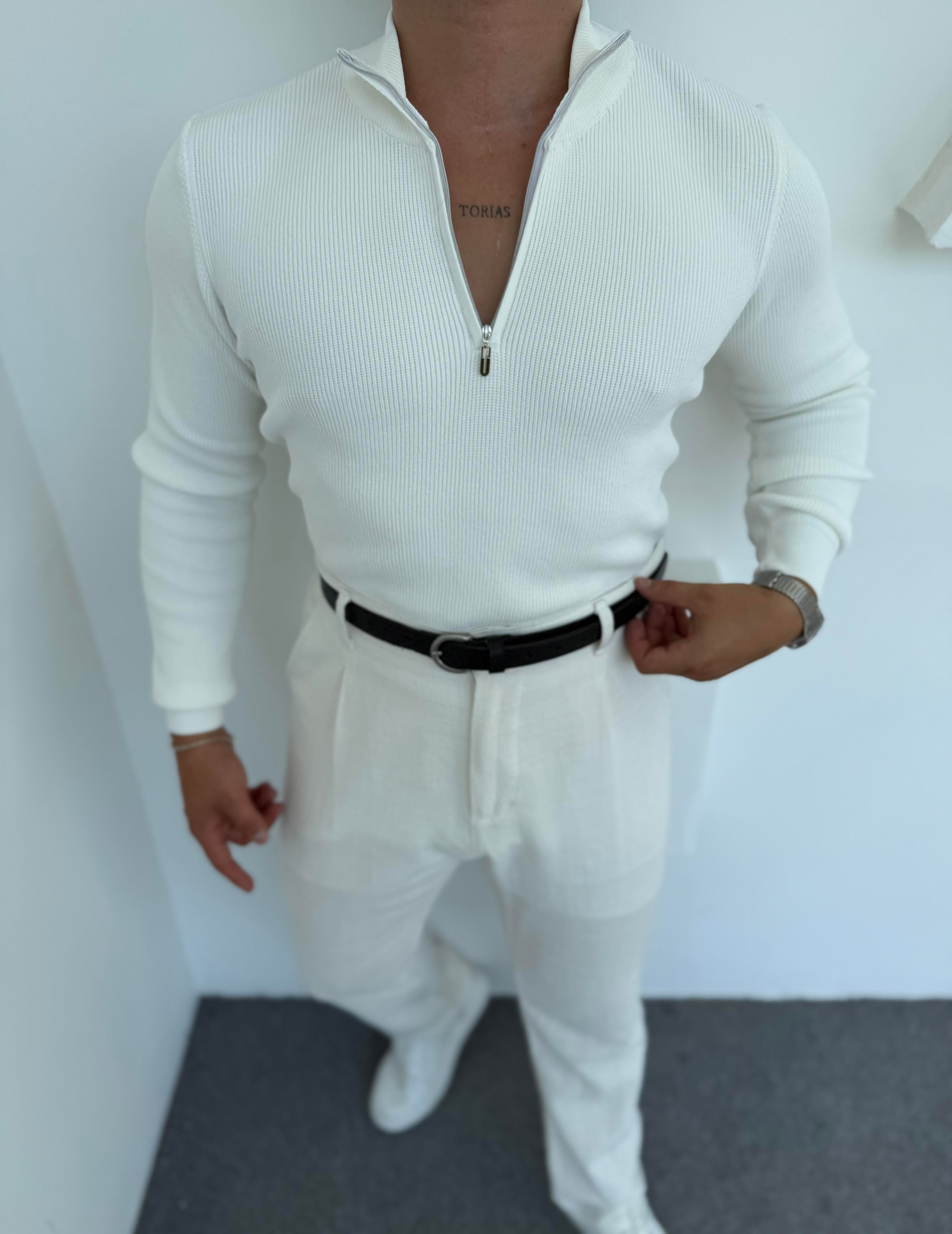 LRD  İNCE FİTİLLİ İTHAL TRİKO BALIKÇI YAKA SWEATSHİRT BEYAZ