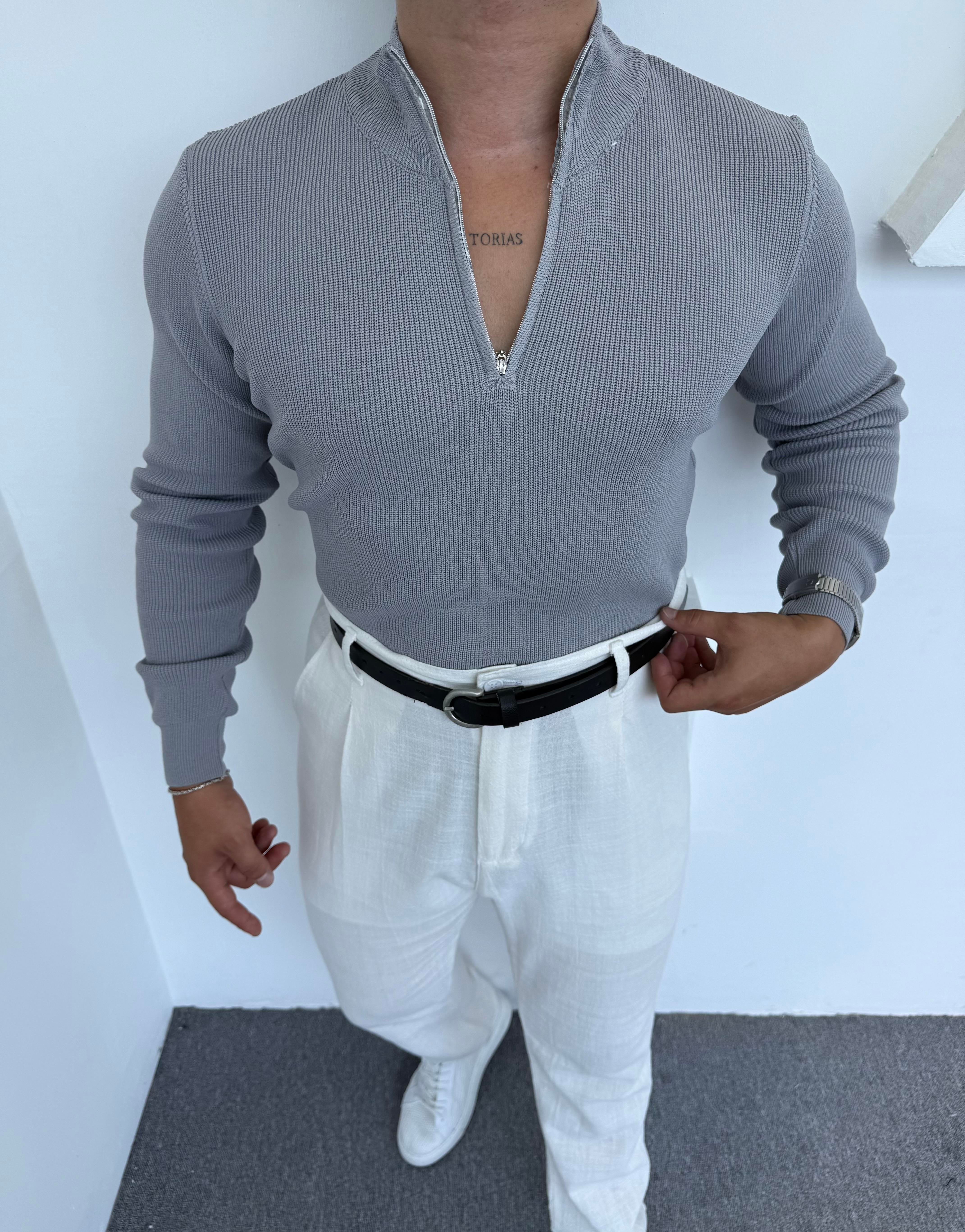 LRD  İNCE FİTİLLİ İTHAL TRİKO BALIKÇI YAKA SWEATSHİRT GRİ