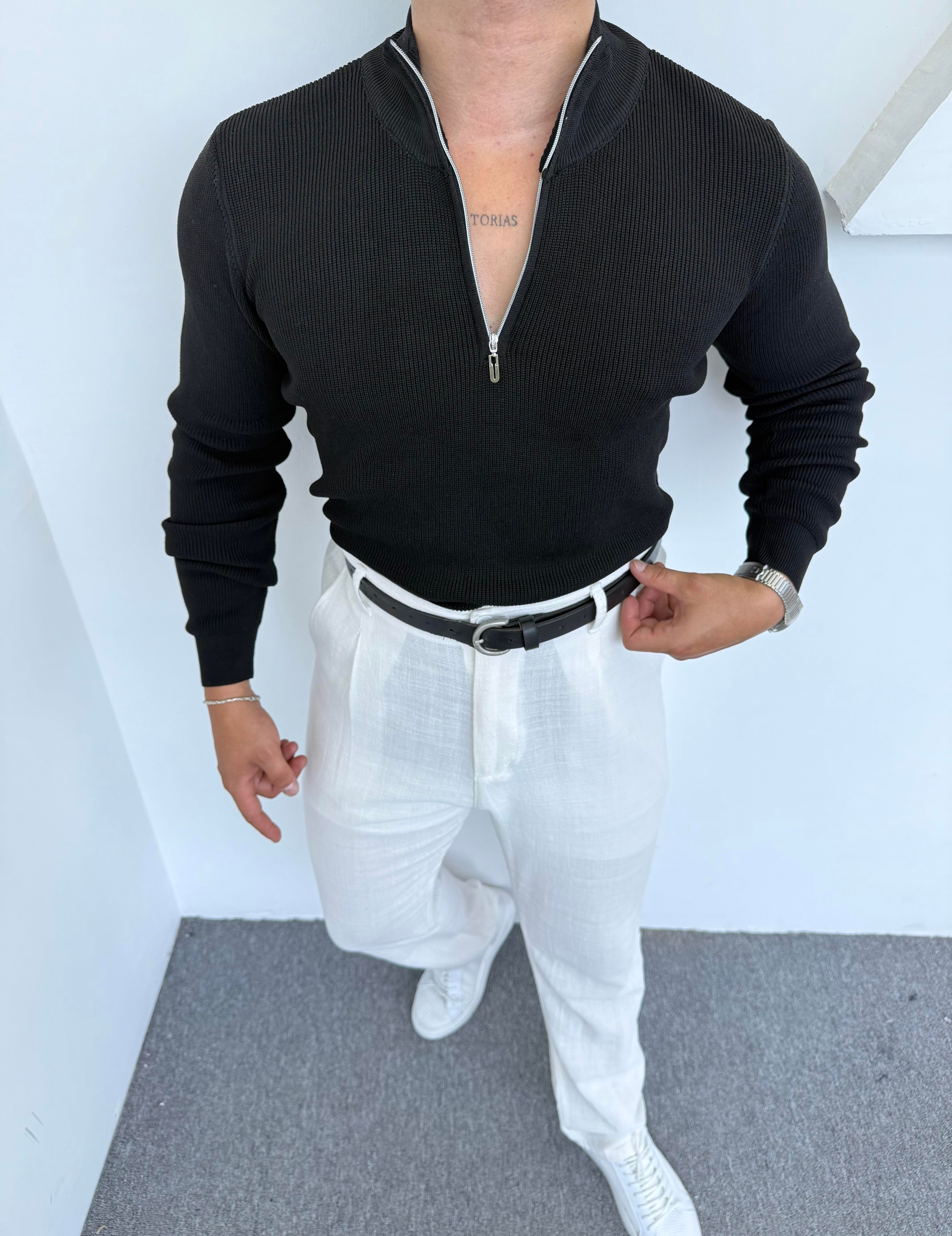 LRD  İNCE FİTİLLİ İTHAL TRİKO BALIKÇI YAKA SWEATSHİRT SİYAH