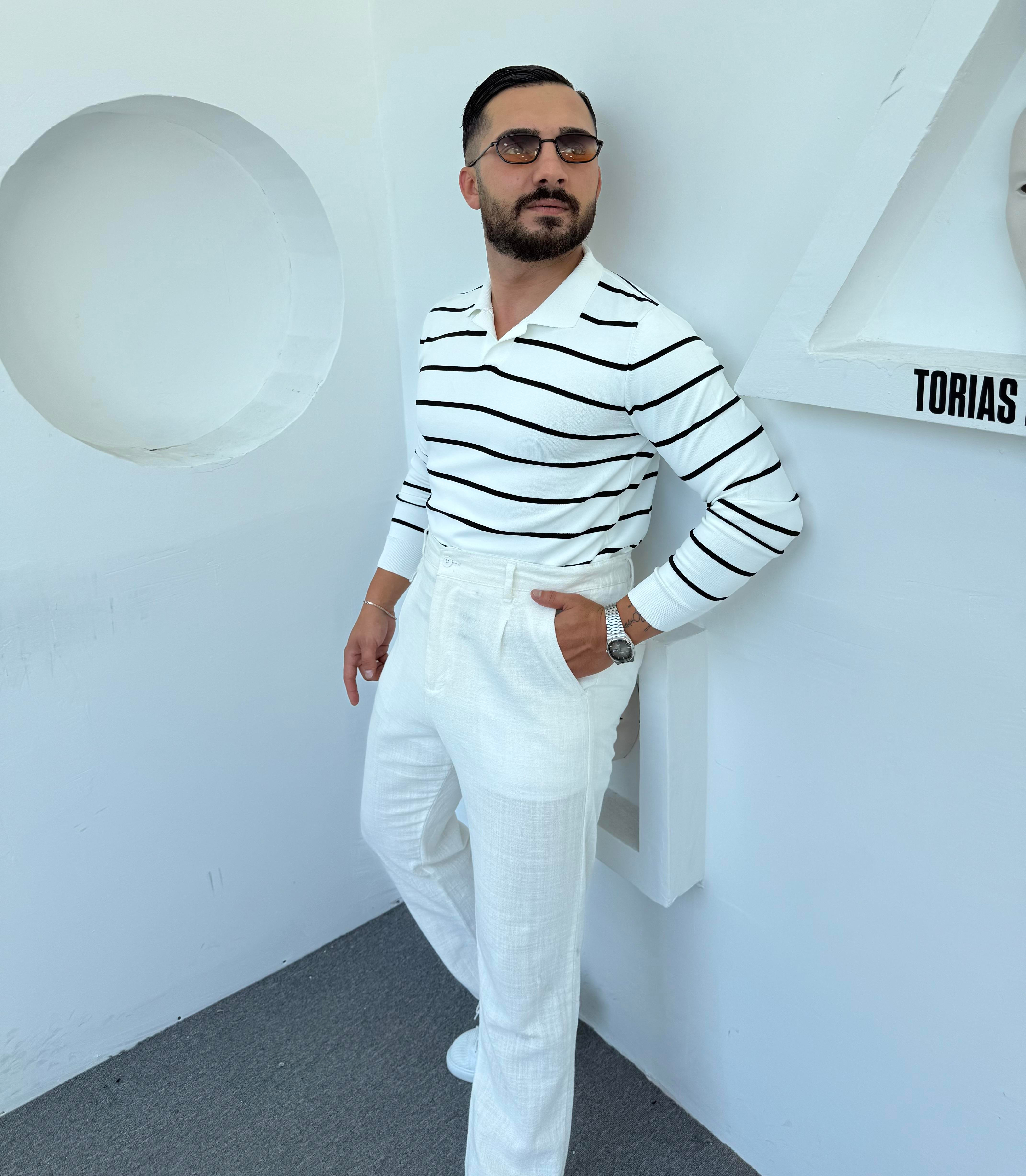 LRD ÇİZGİLİ İTHAL TRİKO POLO YAKA BEYAZ