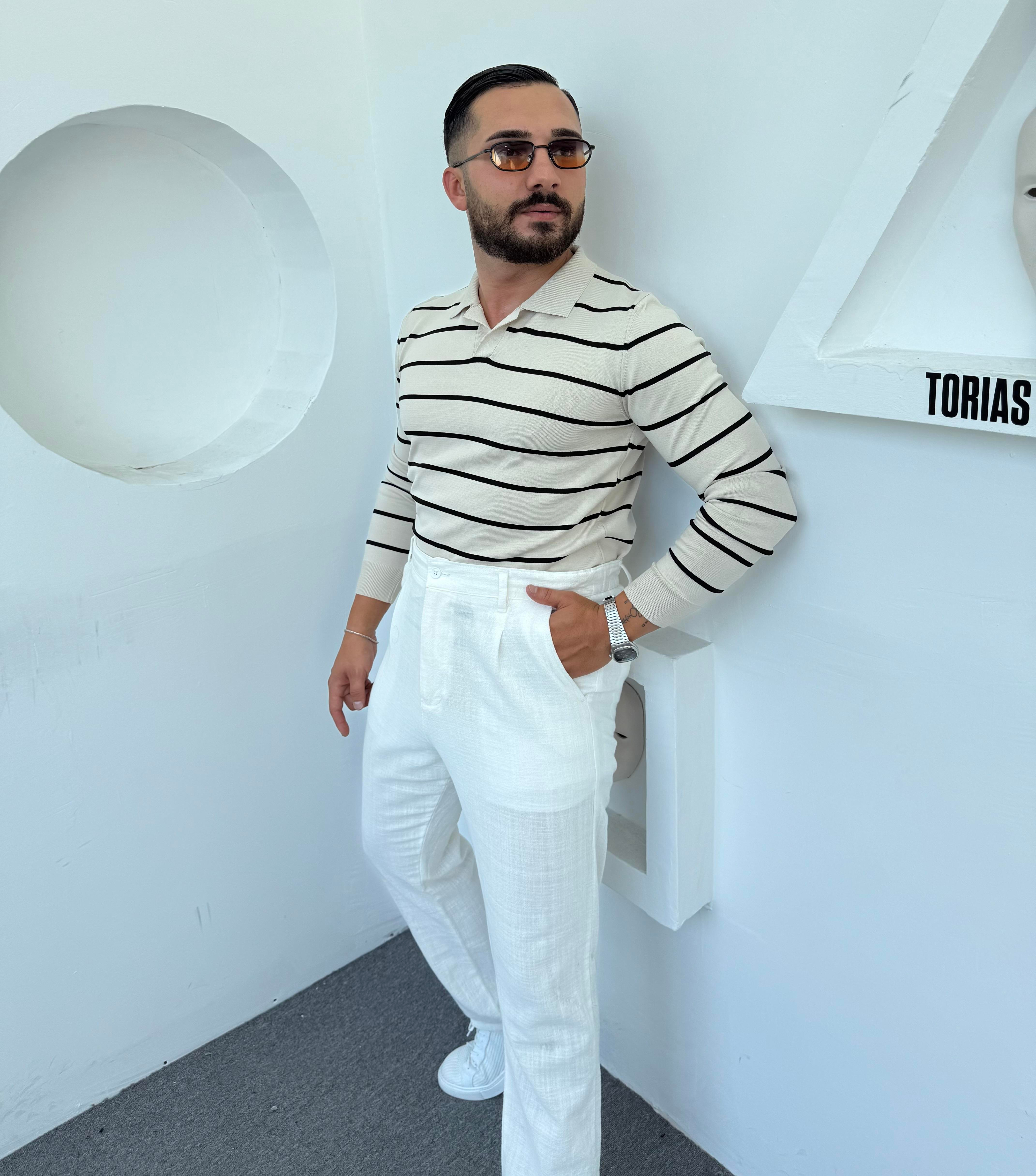 LRD ÇİZGİLİ İTHAL TRİKO POLO YAKA KREM