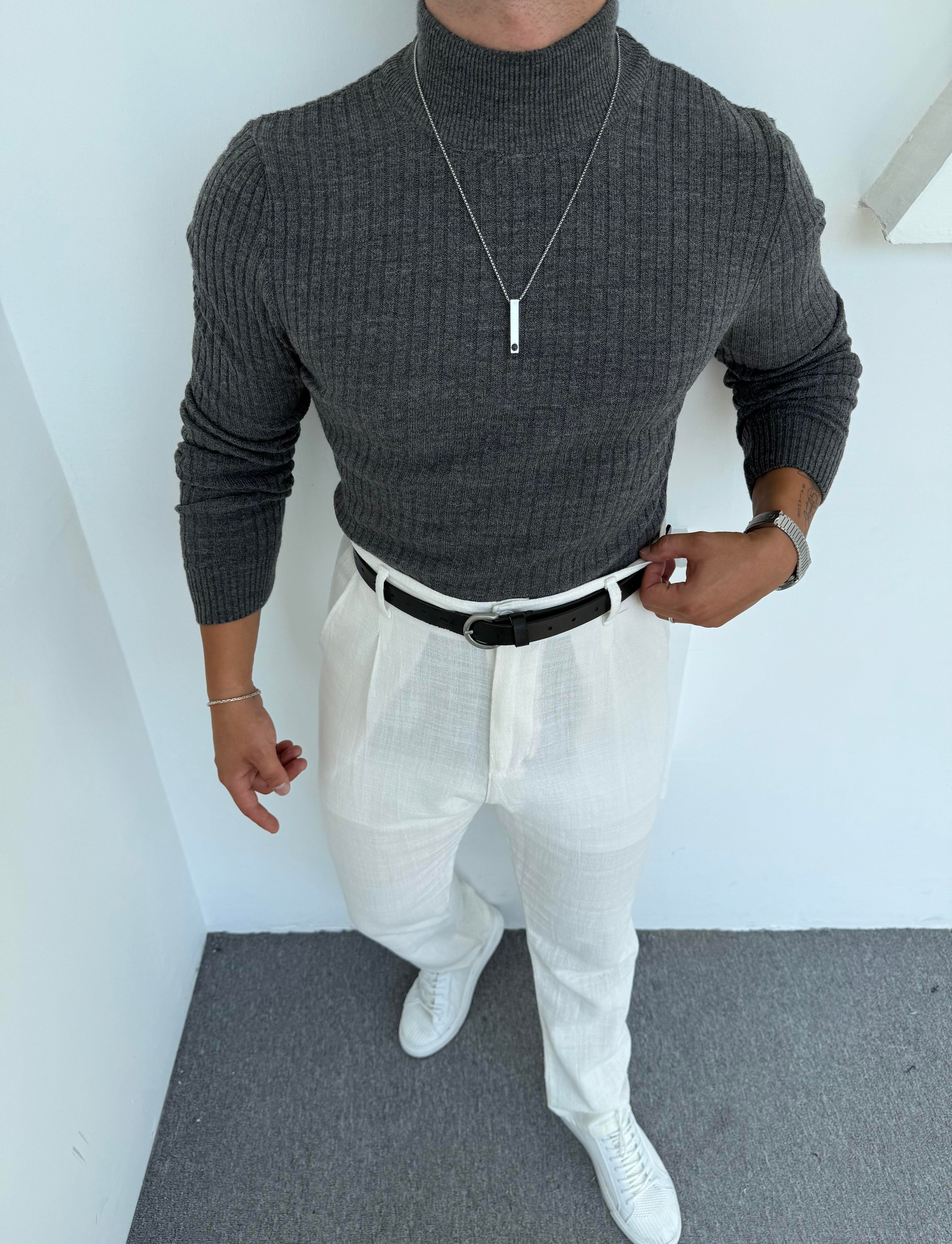 LRD İNCE FİTİLLİ İTHAL TRİKO BALIKÇI YAKA SWEATSHİRT ANTRASİT