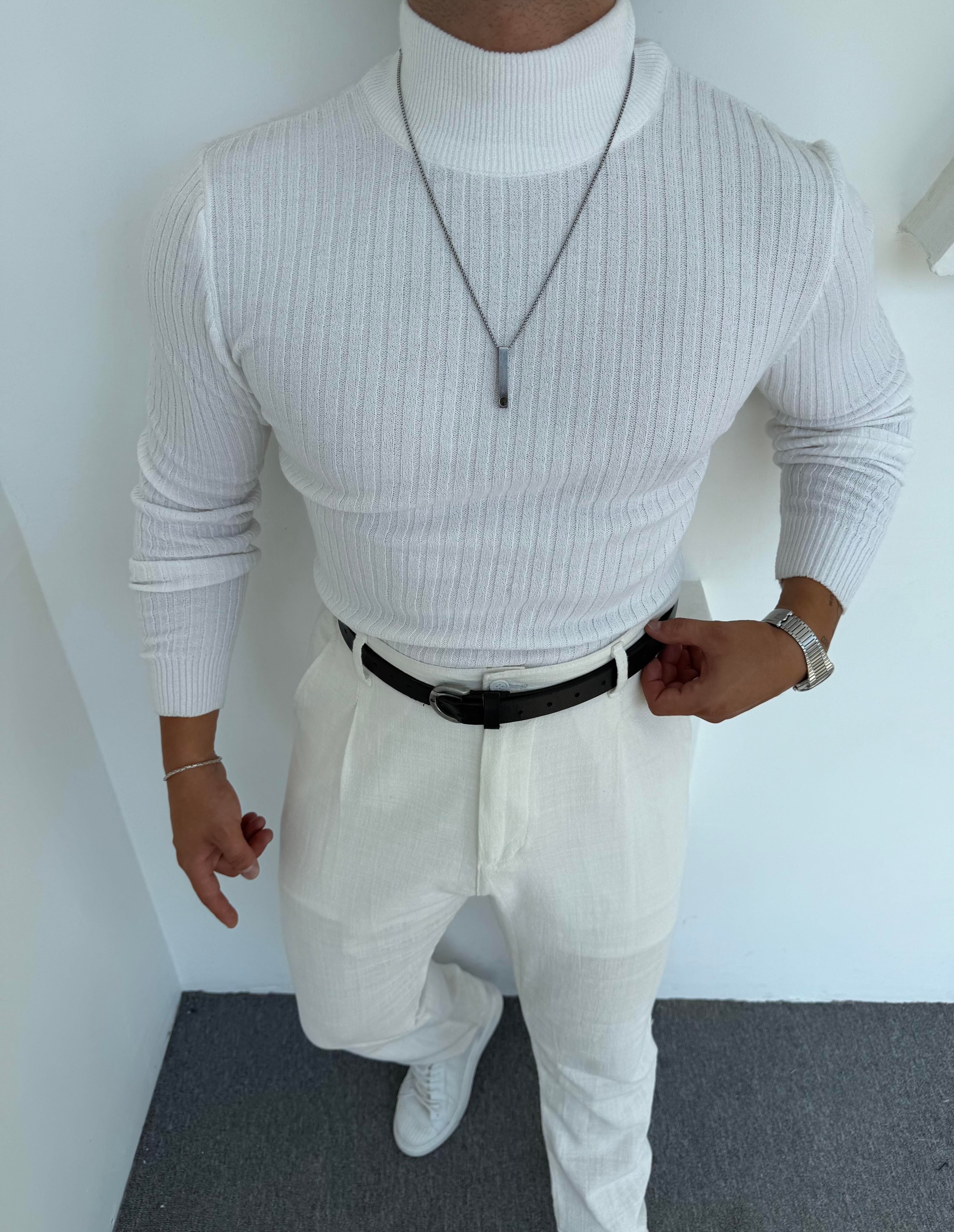 LRD İNCE FİTİLLİ İTHAL TRİKO BALIKÇI YAKA SWEATSHİRT BEYAZ