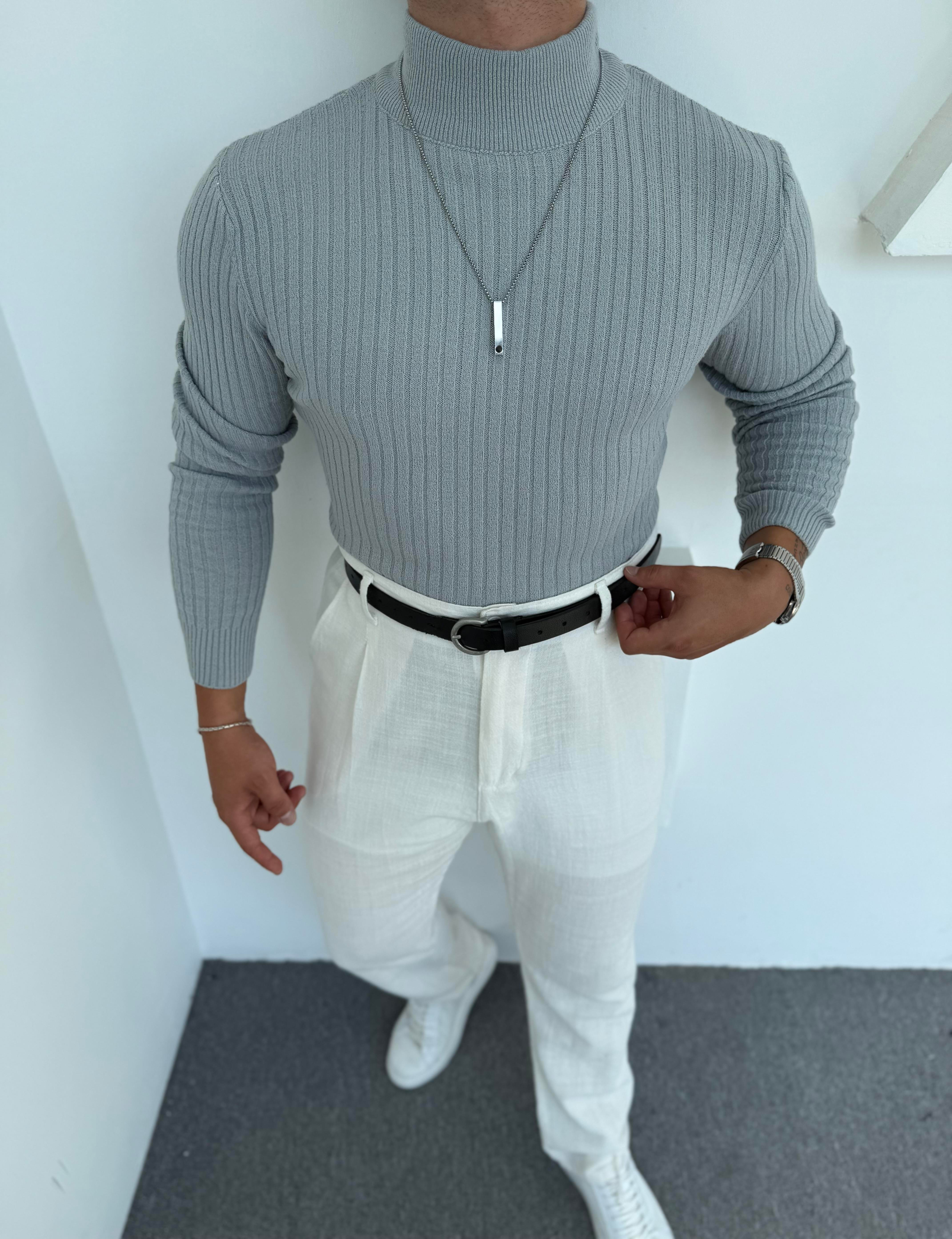 LRD İNCE FİTİLLİ İTHAL TRİKO BALIKÇI YAKA SWEATSHİRT GRİ