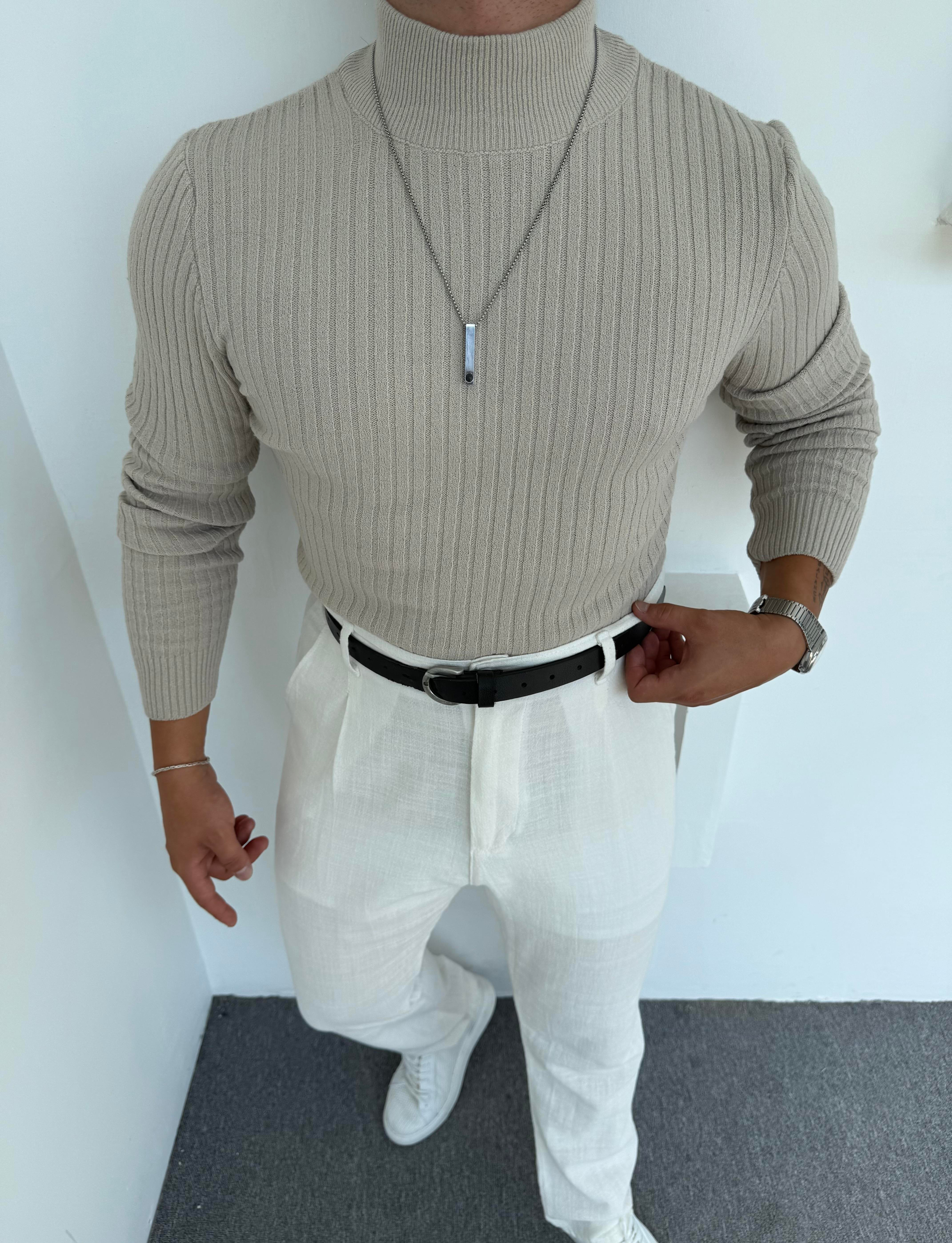 LRD İNCE FİTİLLİ İTHAL TRİKO BALIKÇI YAKA SWEATSHİRT KREM
