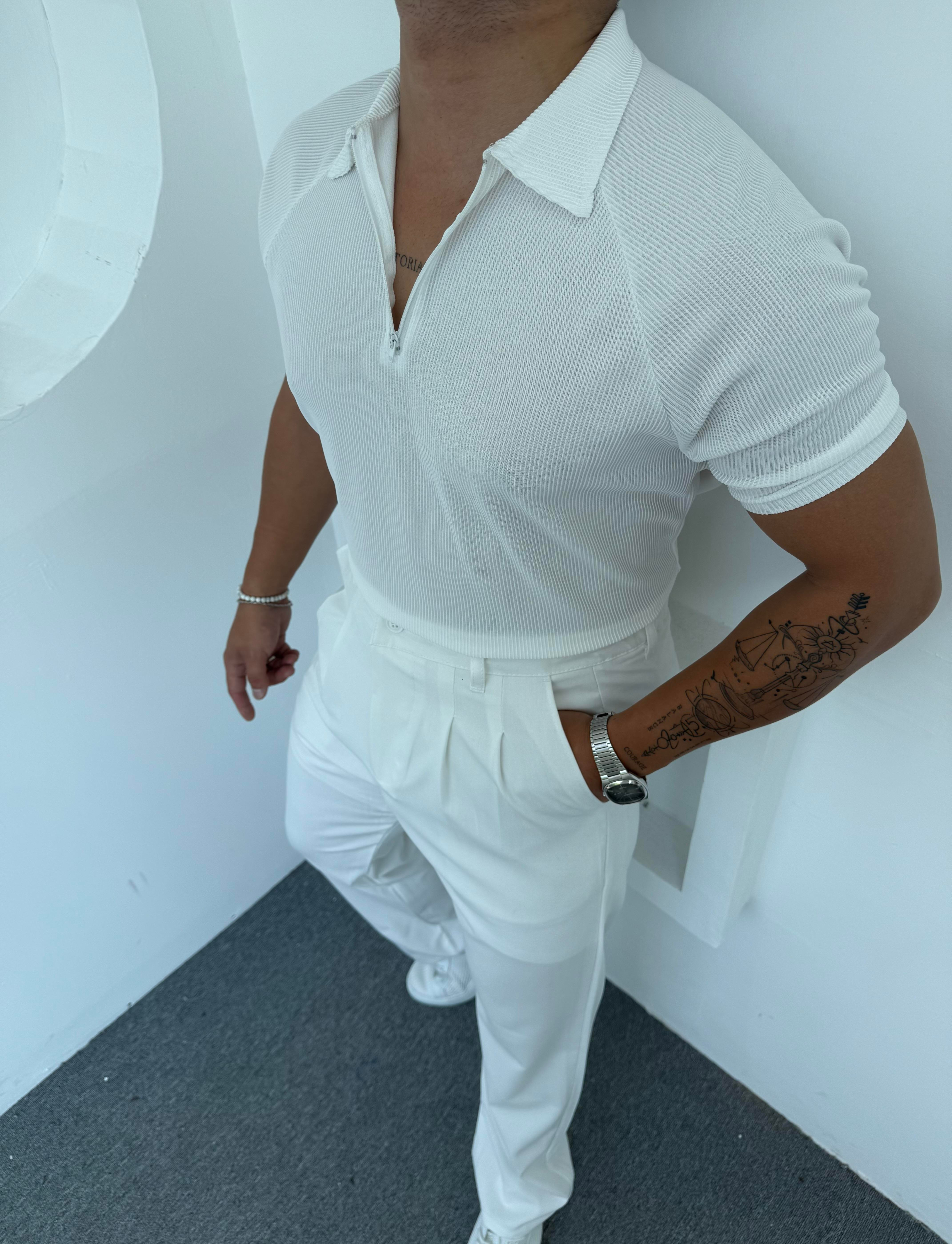 OTTOMAN YARIM FERMUAR TİŞÖRT BEYAZ