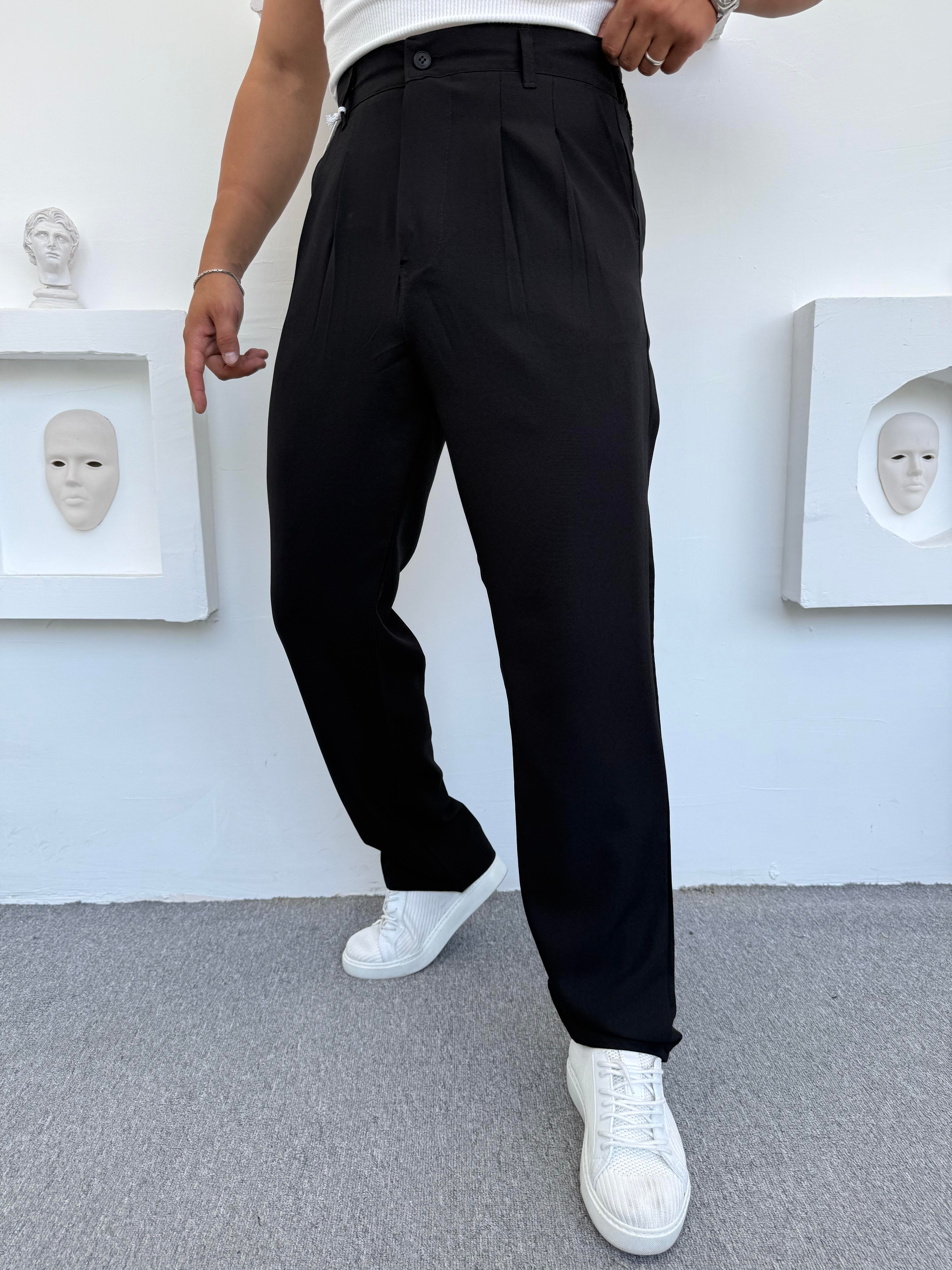 SOFYA KETEN PİLELİ BAGGY SİYAH