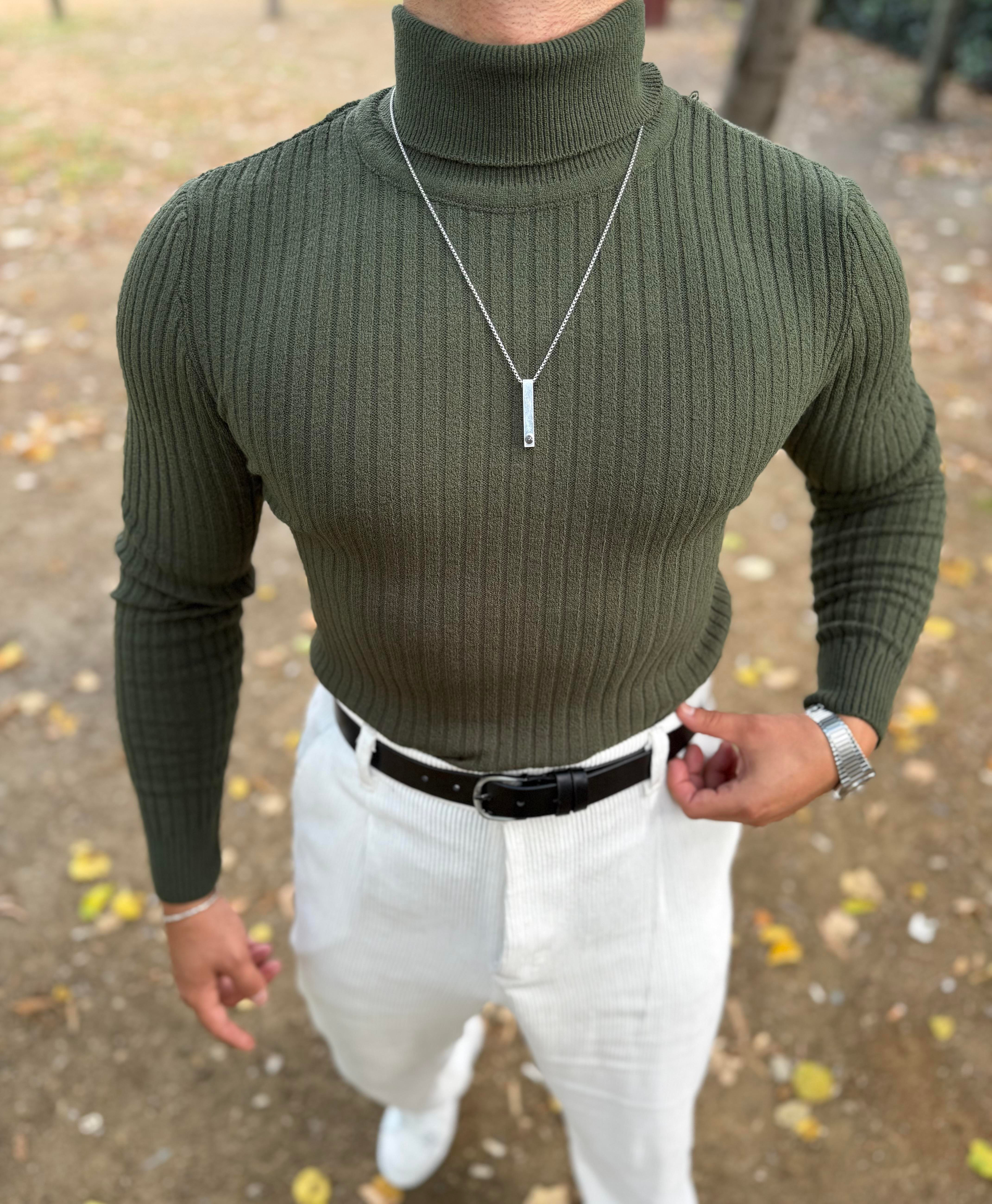 TAM BOĞAZLI FİTİLLİ TRİKO SWEATSHİRT HAKİ YEŞİL