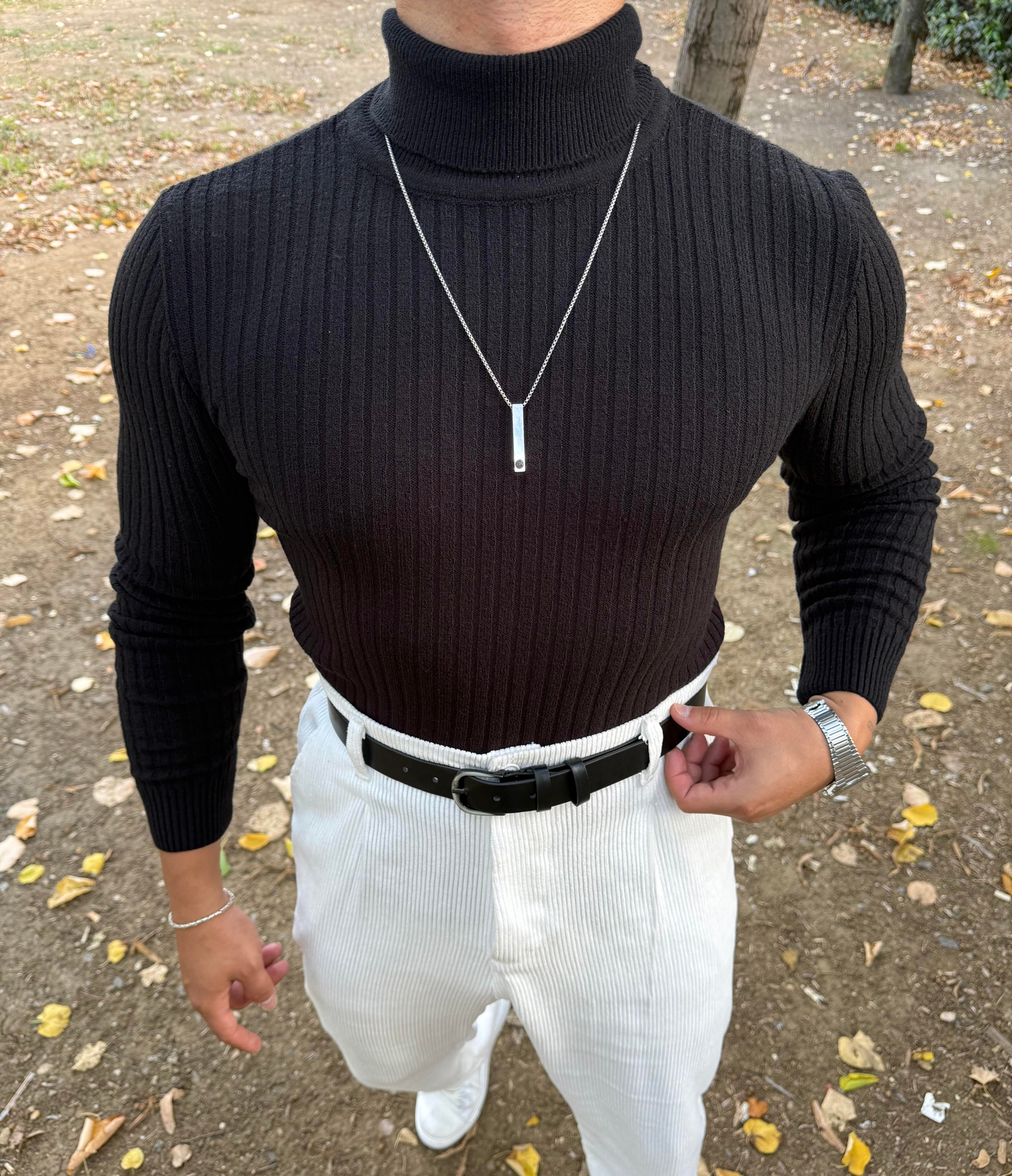 TAM BOĞAZLI FİTİLLİ TRİKO SWEATSHİRT SİYAH
