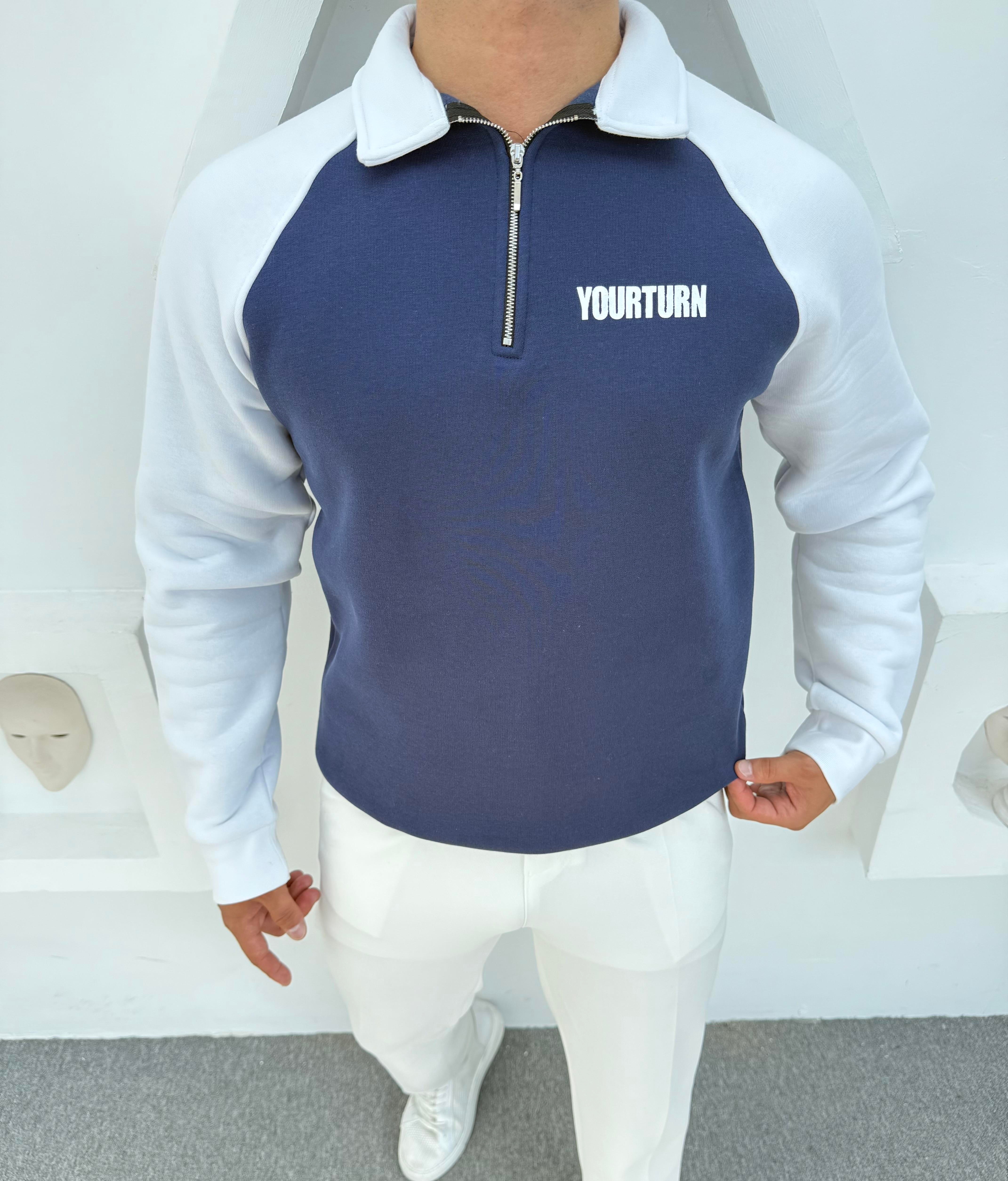 YOUR TURN BASKILI 3 İPLİK ŞARDONLU SWEATSHİRT LACİVERT