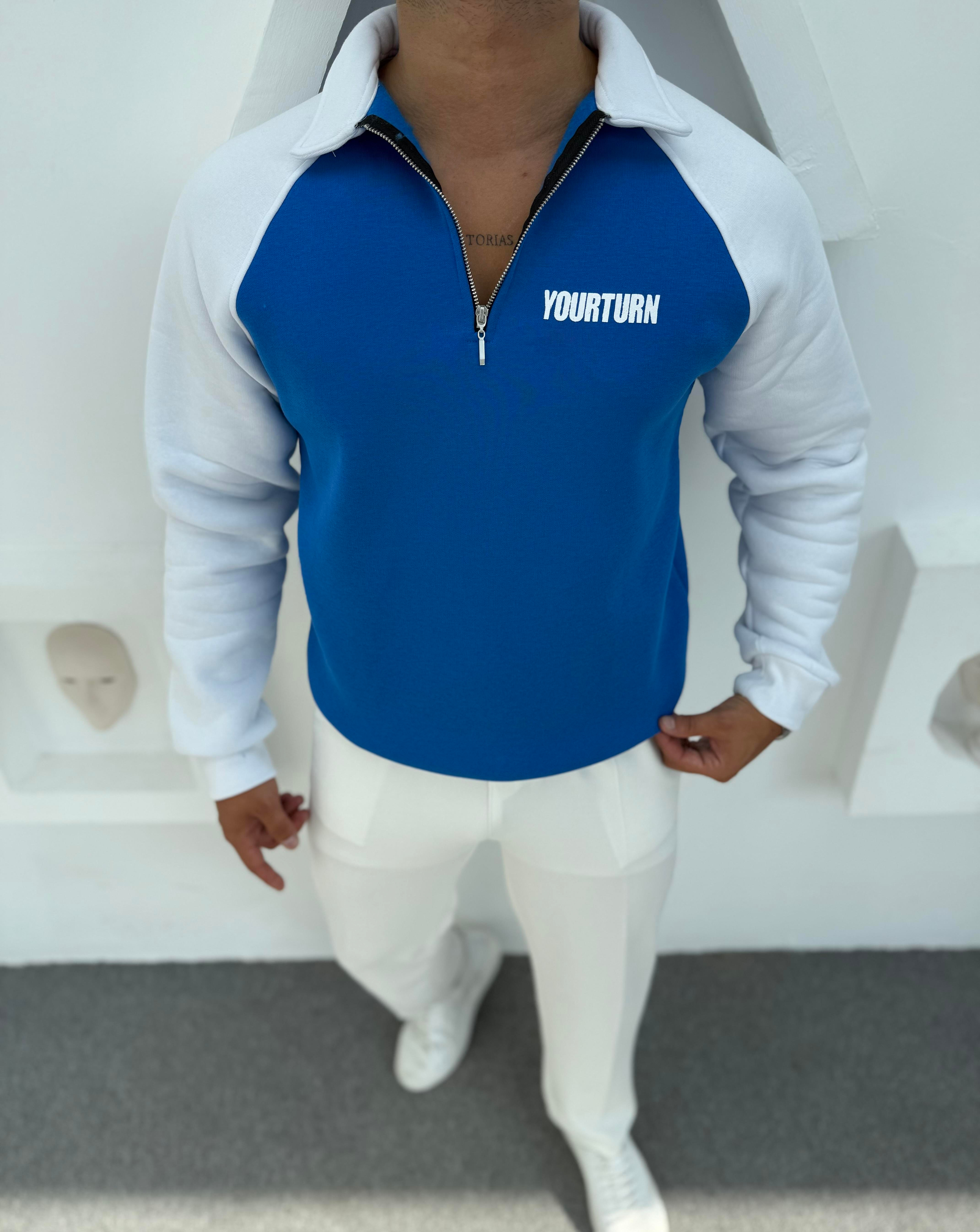 YOUR TURN BASKILI 3 İPLİK ŞARDONLU SWEATSHİRT MAVİ