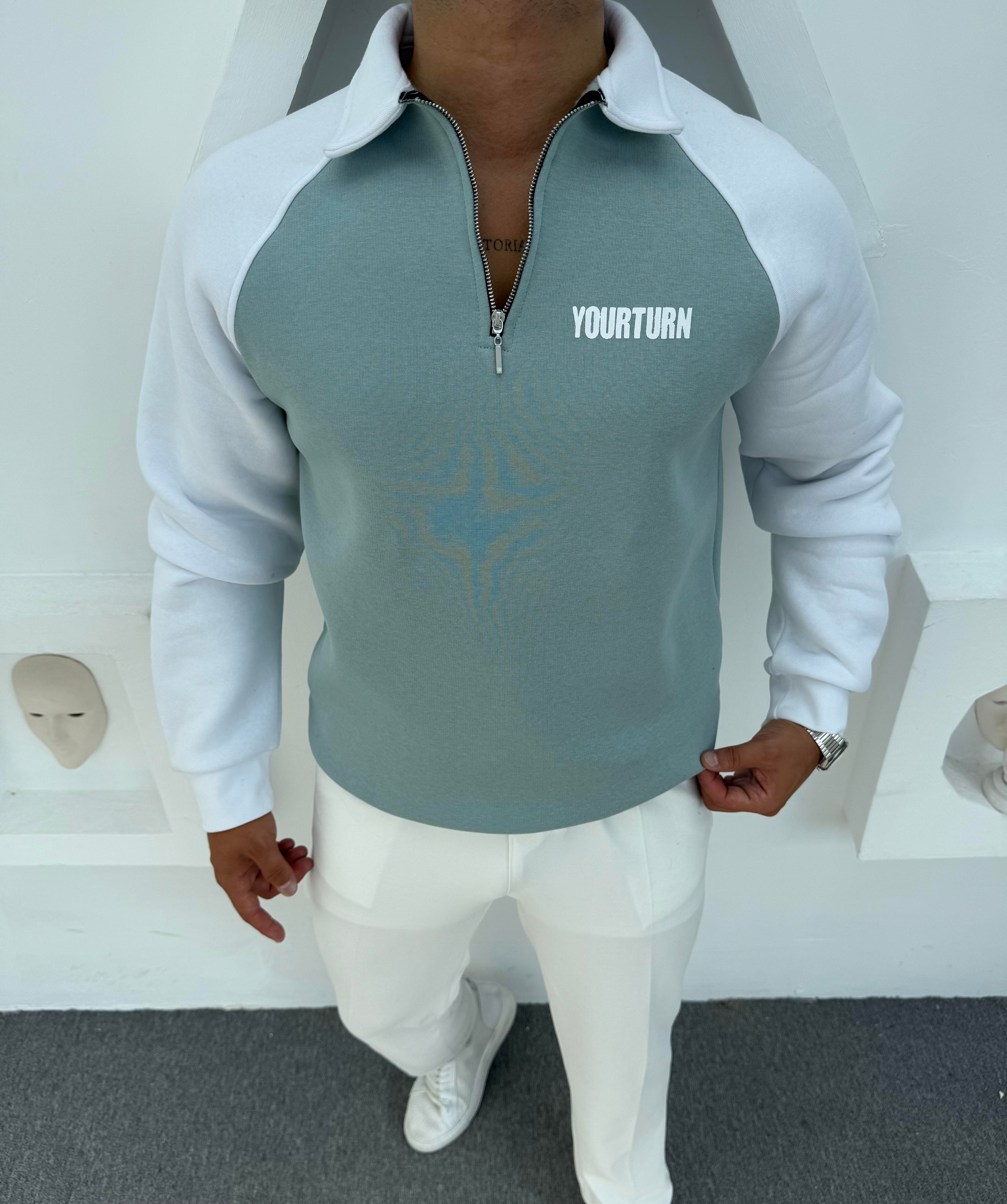 YOUR TURN BASKILI 3 İPLİK ŞARDONLU SWEATSHİRT YEŞİL