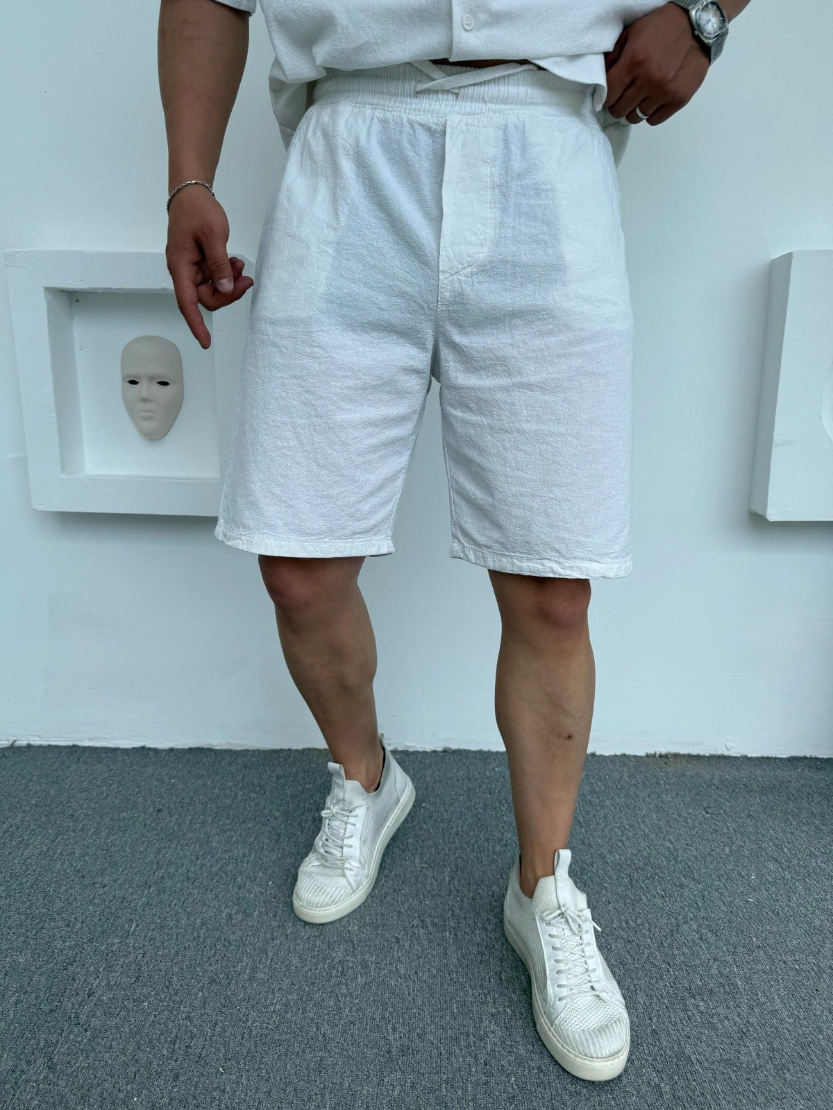 %100 KETEN ŞORT BEYAZ