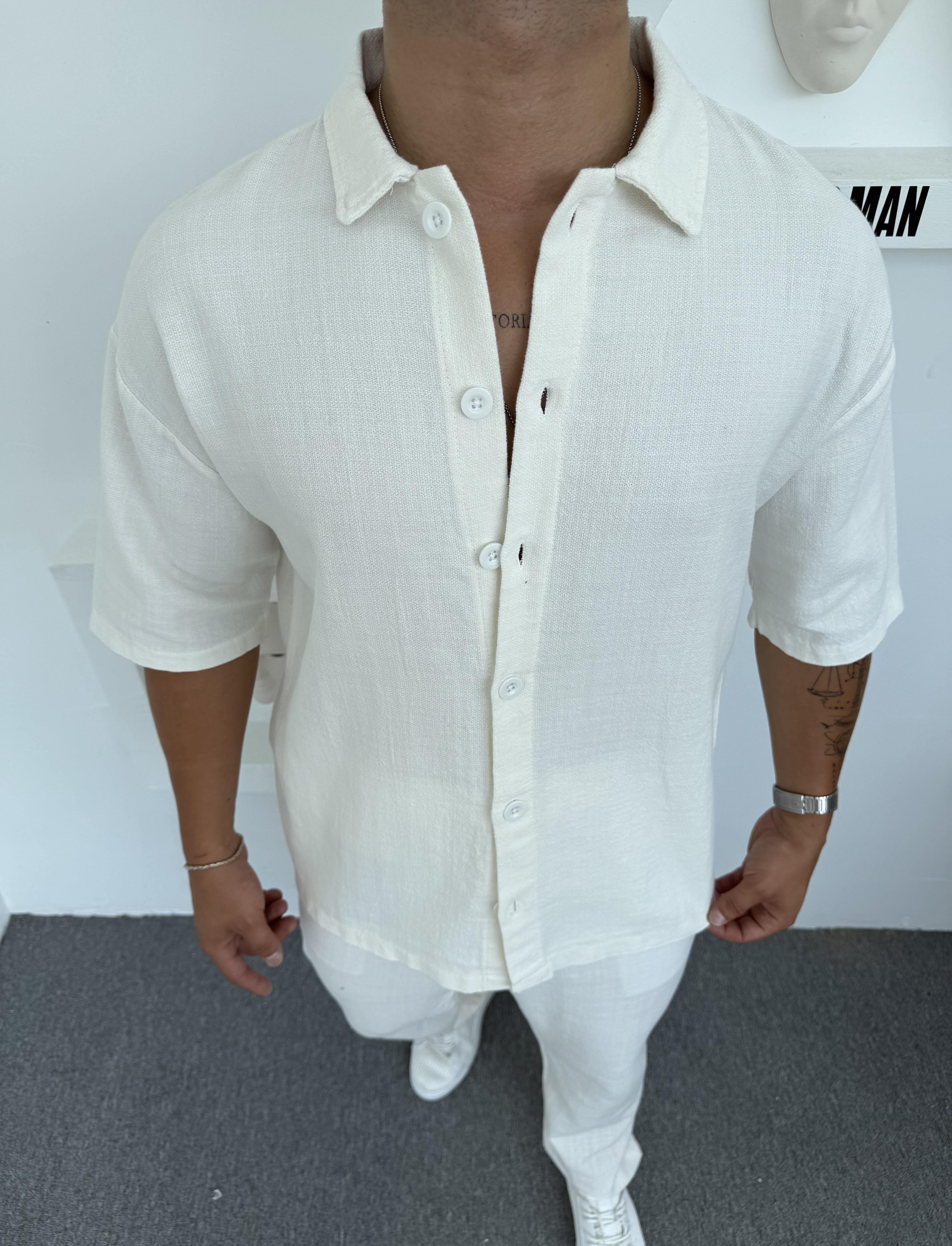 %100 PAMUK YIKAMALI KISAKOL OVERSİZE GÖMLEK BEYAZ