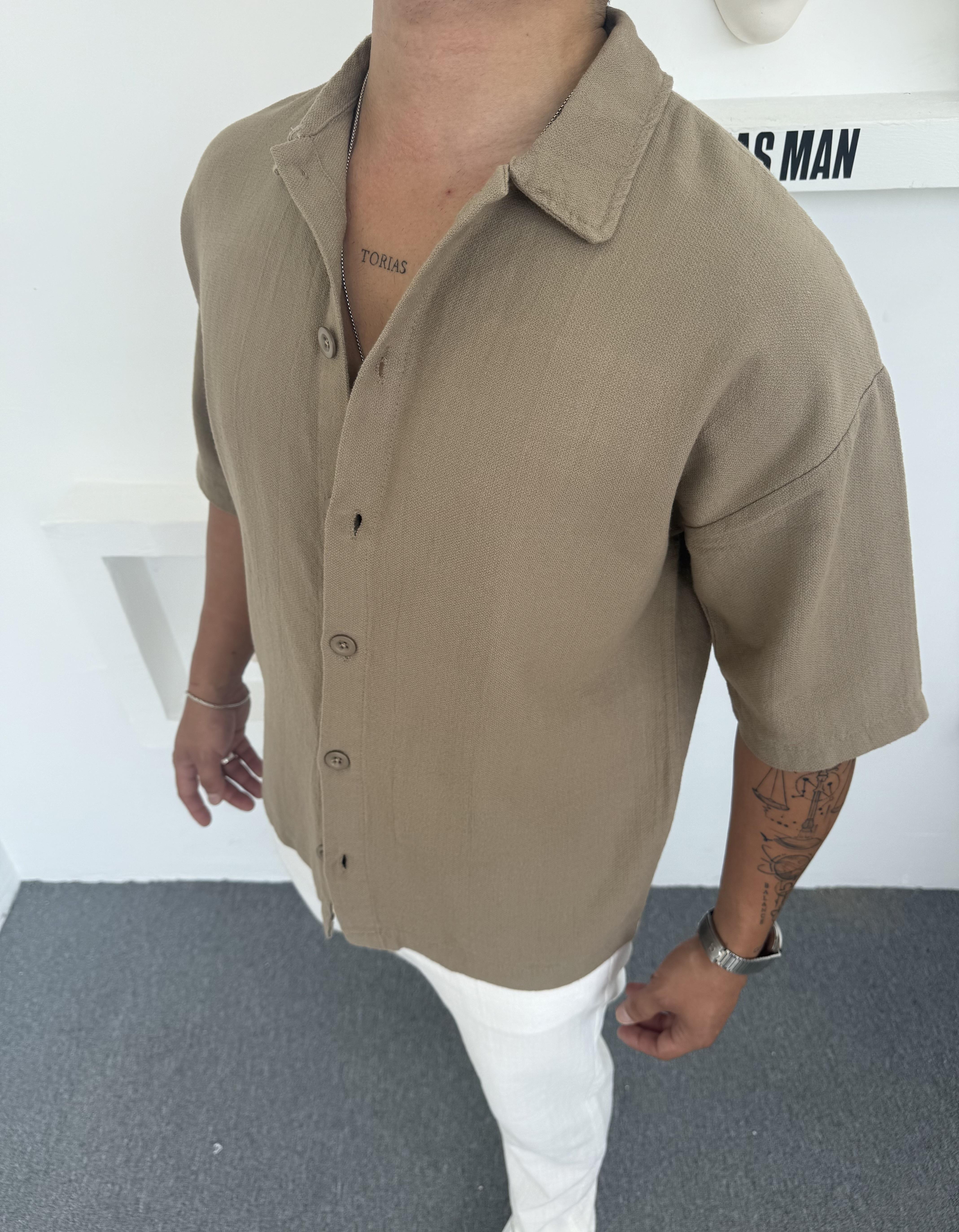 %100 PAMUK YIKAMALI KISAKOL OVERSİZE GÖMLEK KREMİT