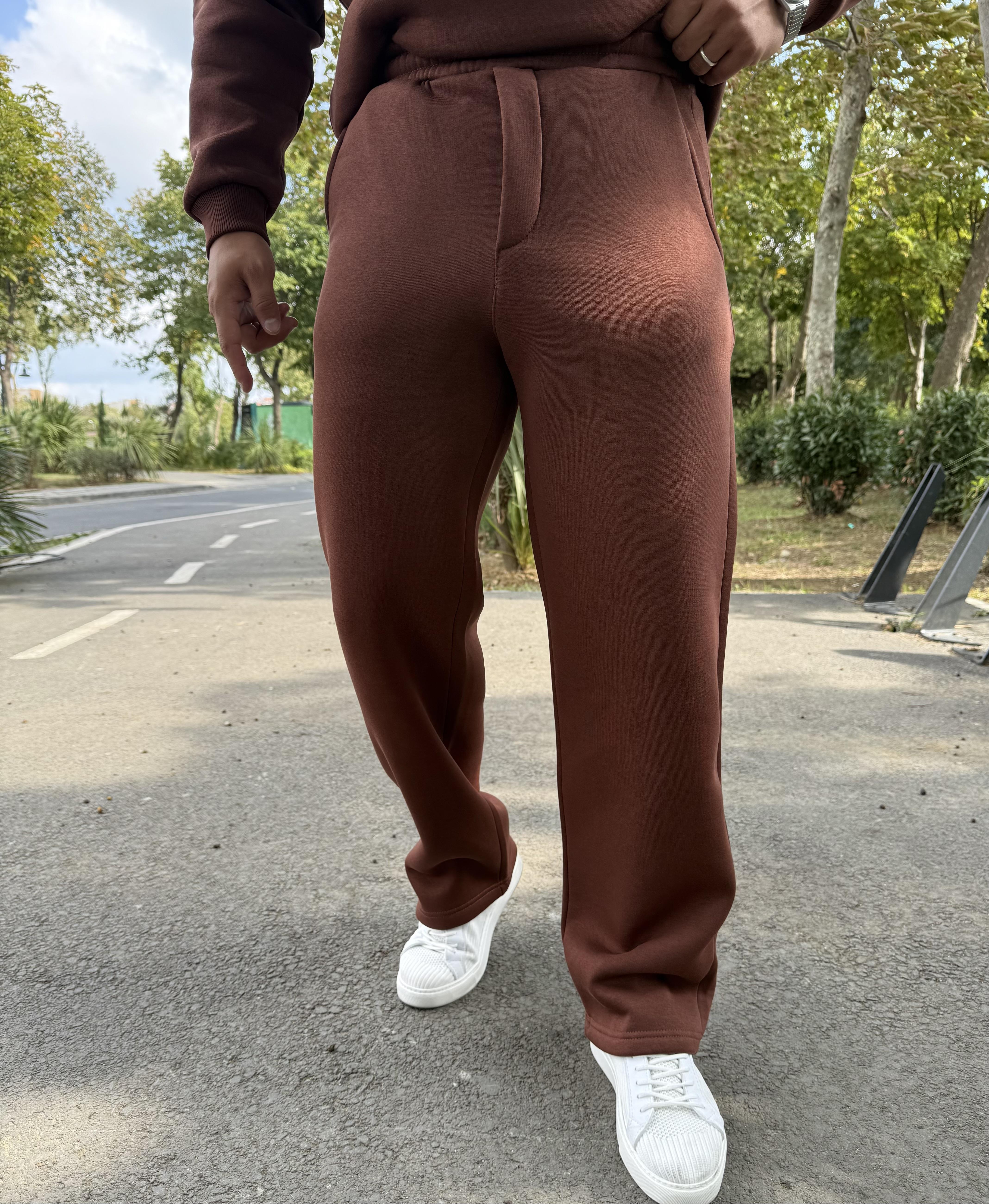 3 İPLİK ŞARDONLU BAGGY KALIP PANTOLON ACI KAHVE