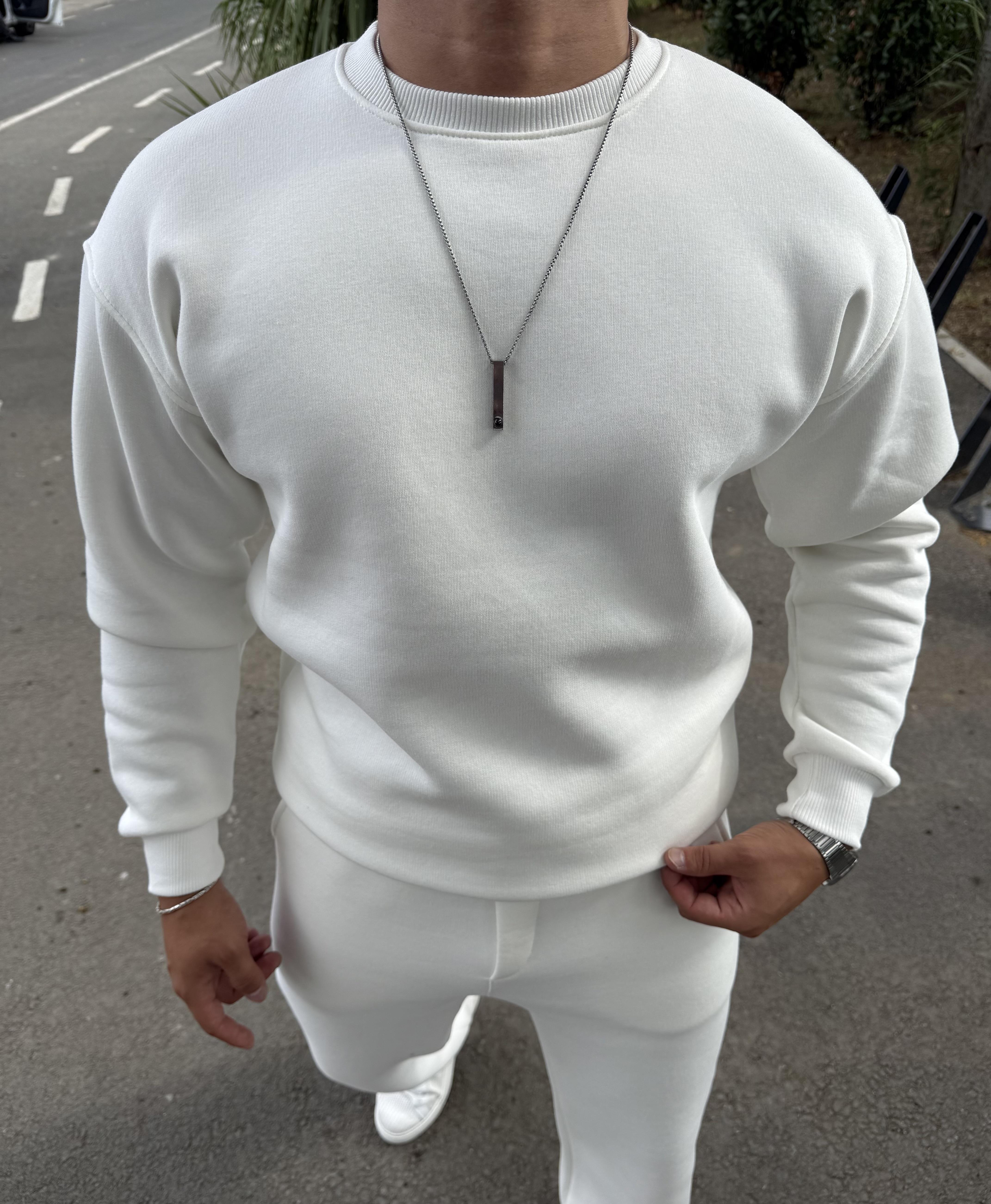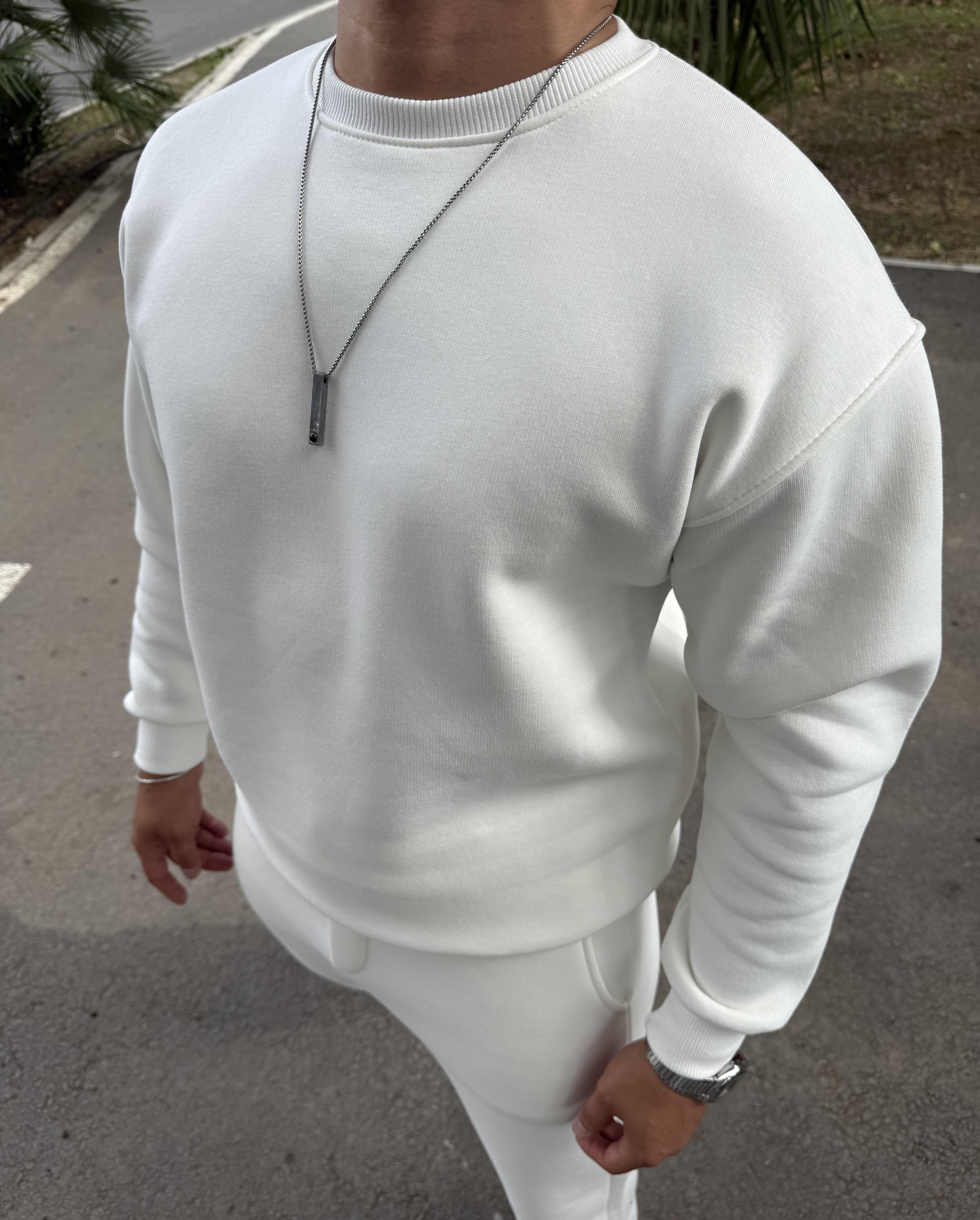 3 İPLİK ŞARDONLU BİSİKLET YAKA SWEATSHİRT BEYAZ