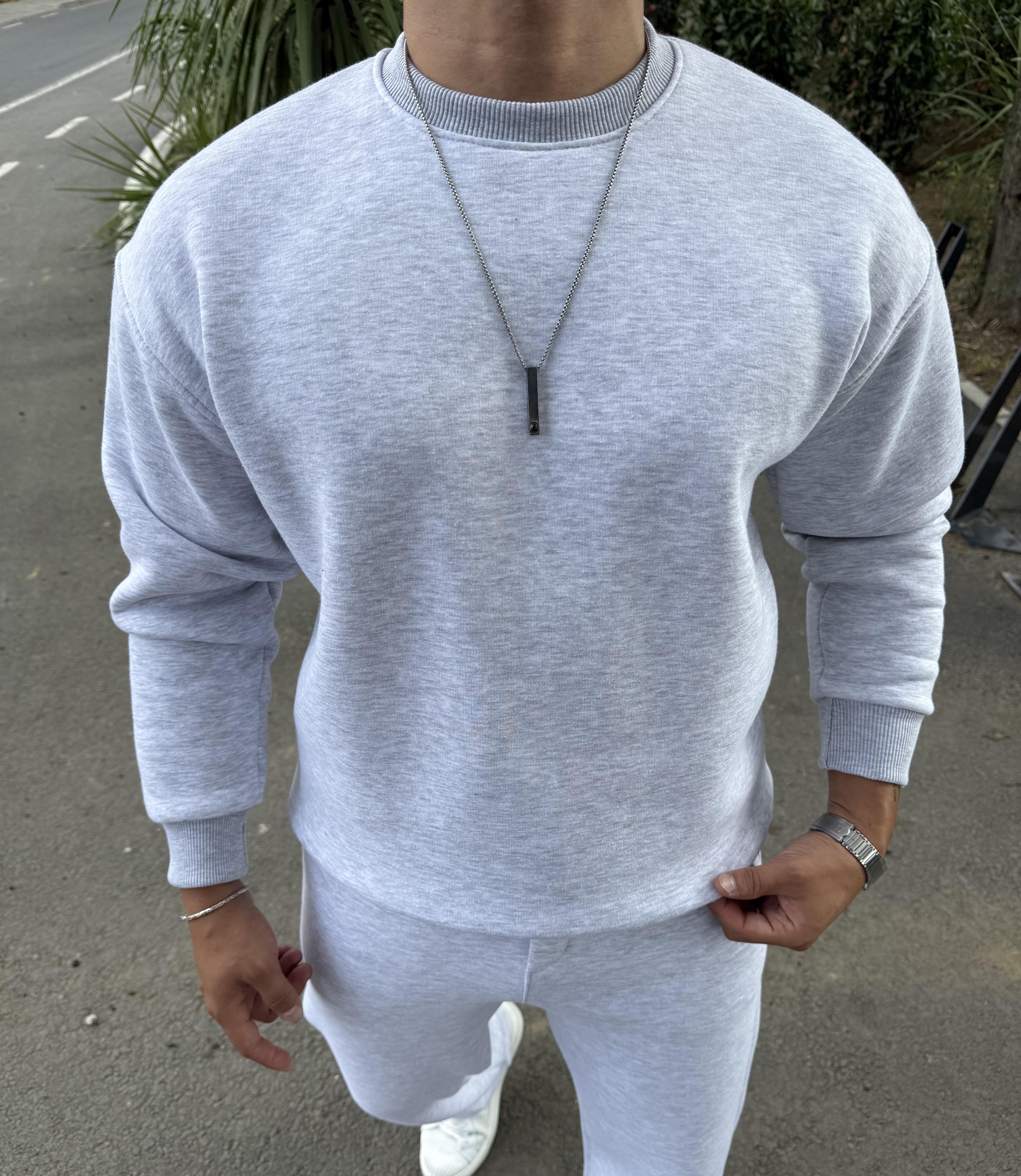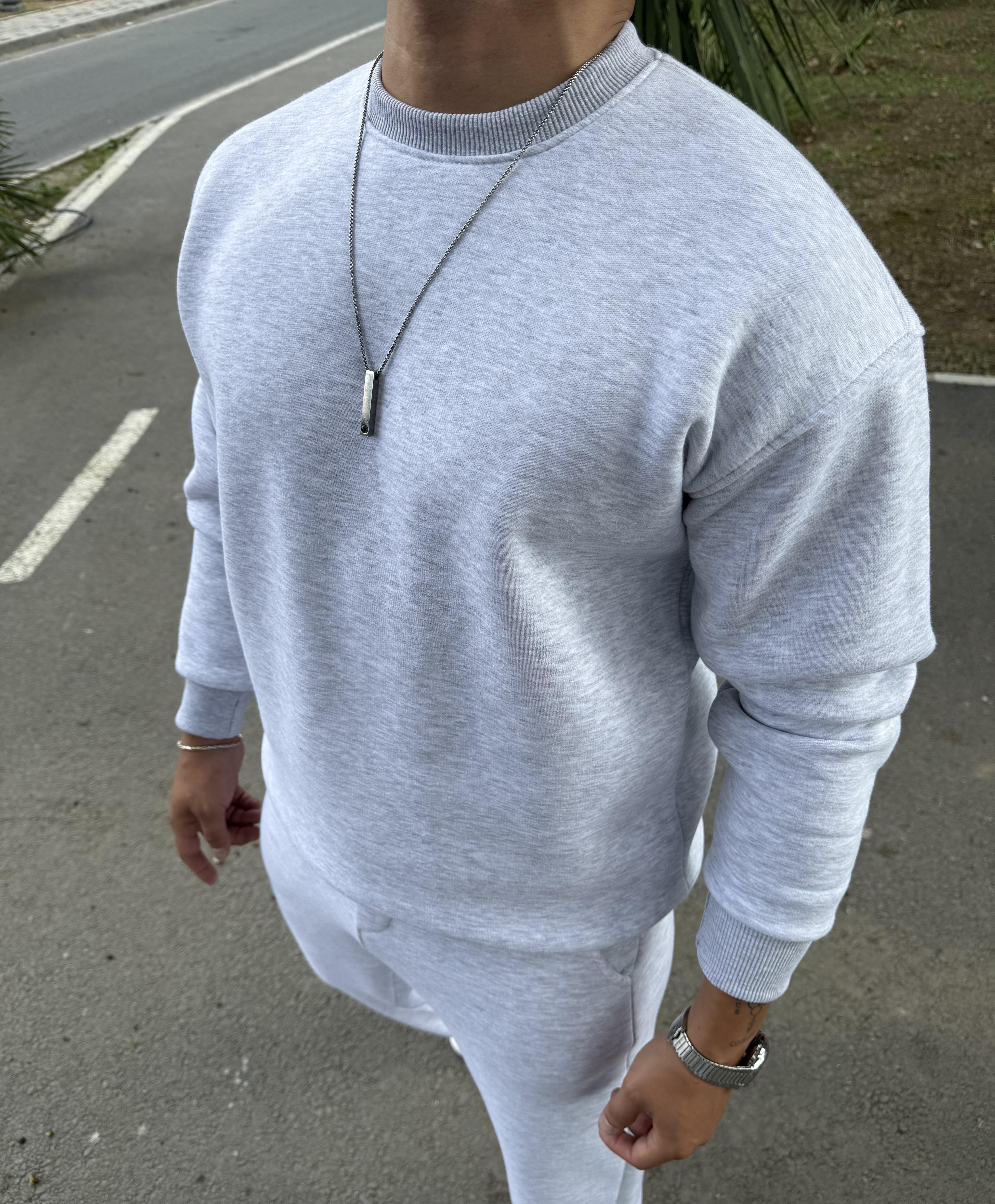 3 İPLİK ŞARDONLU BİSİKLET YAKA SWEATSHİRT GRİ