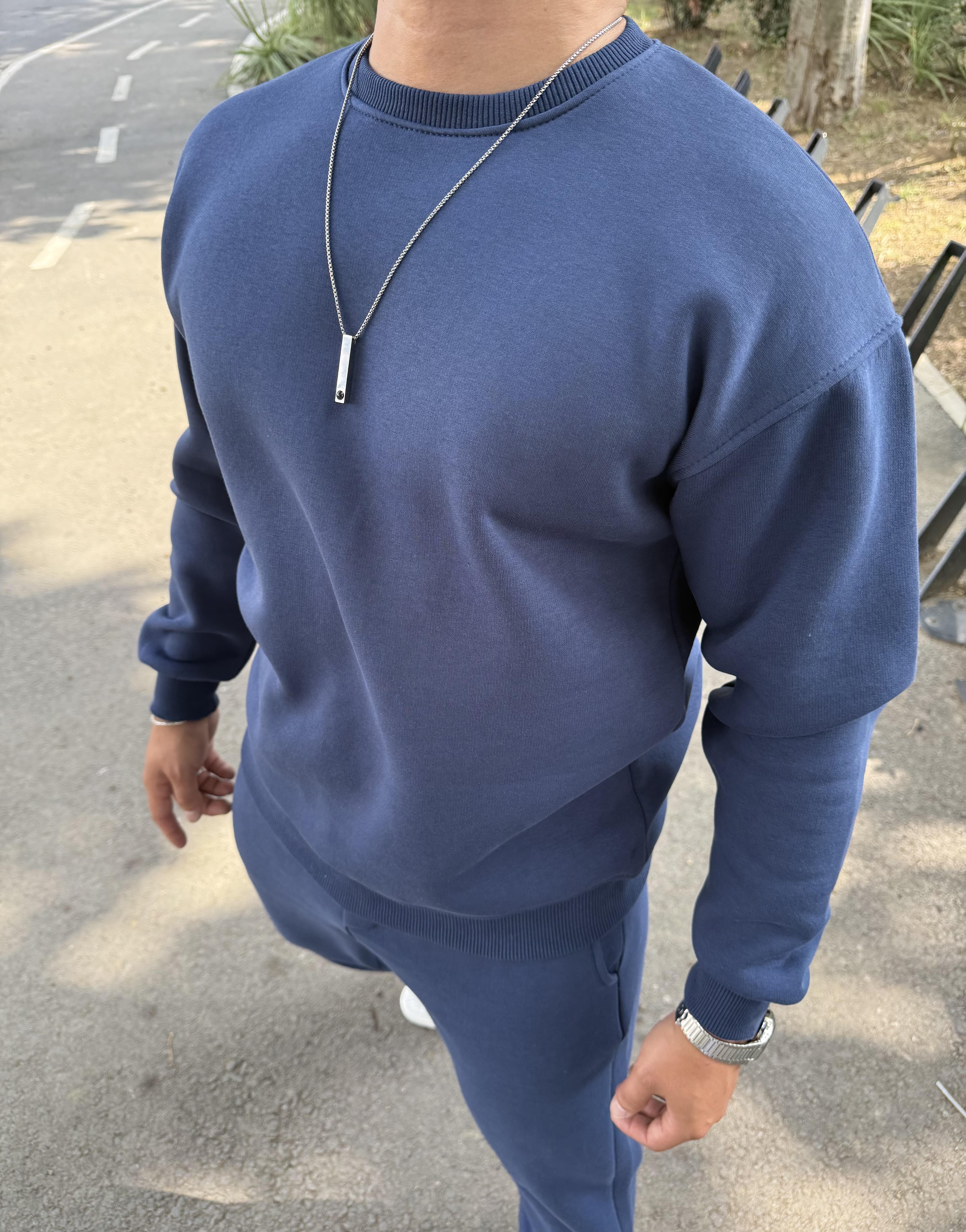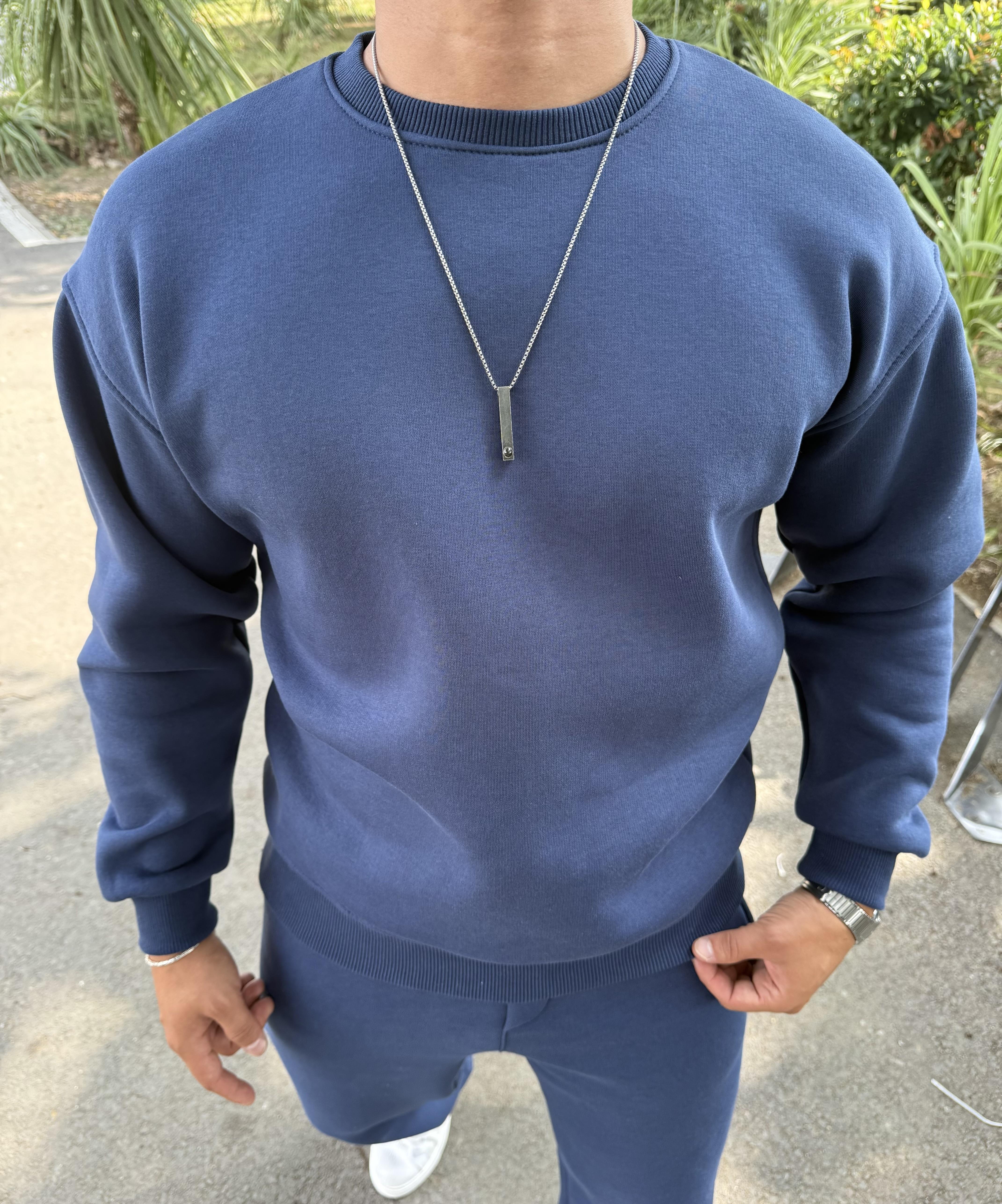 3 İPLİK ŞARDONLU BİSİKLET YAKA SWEATSHİRT LACİVERT