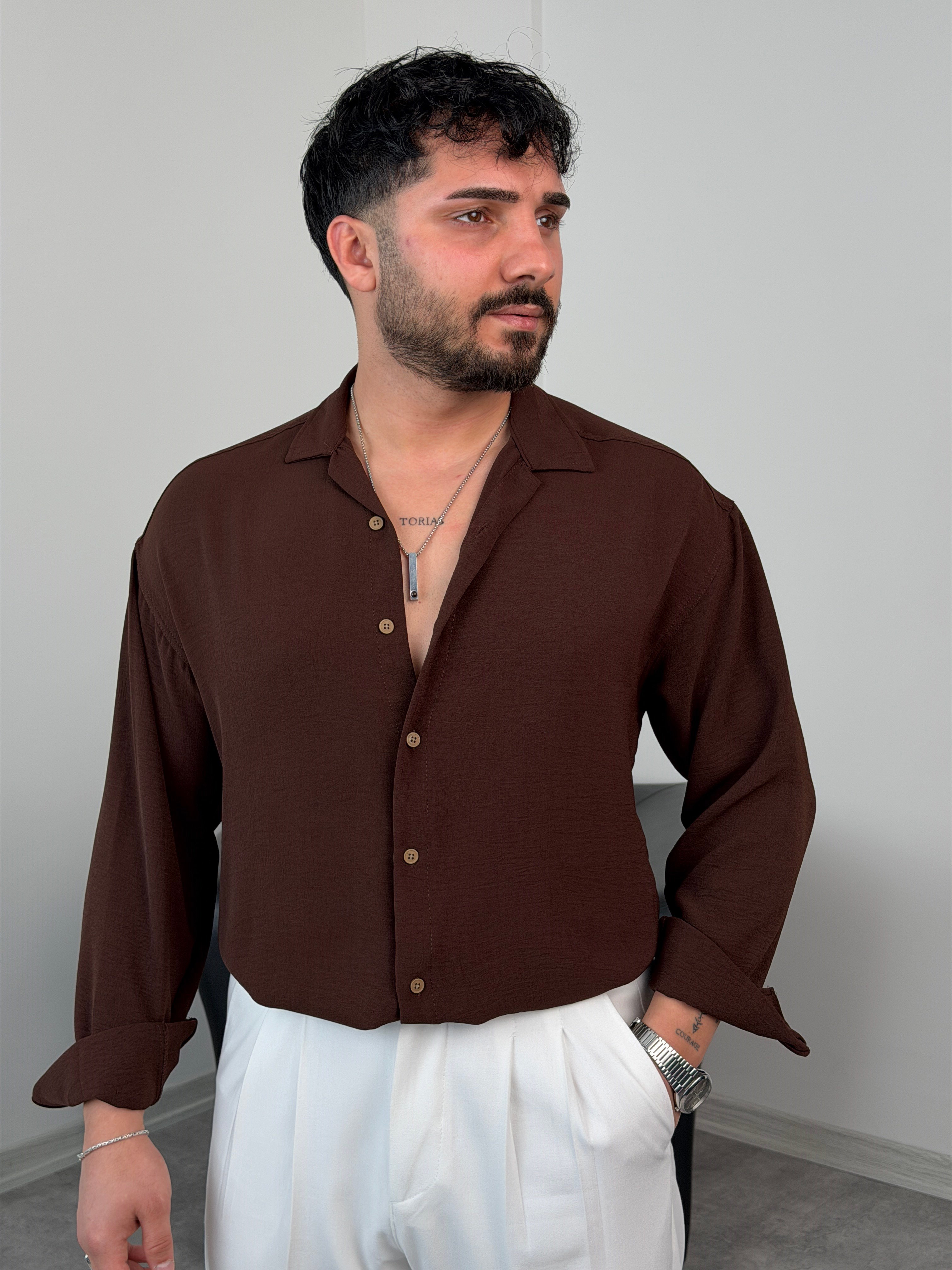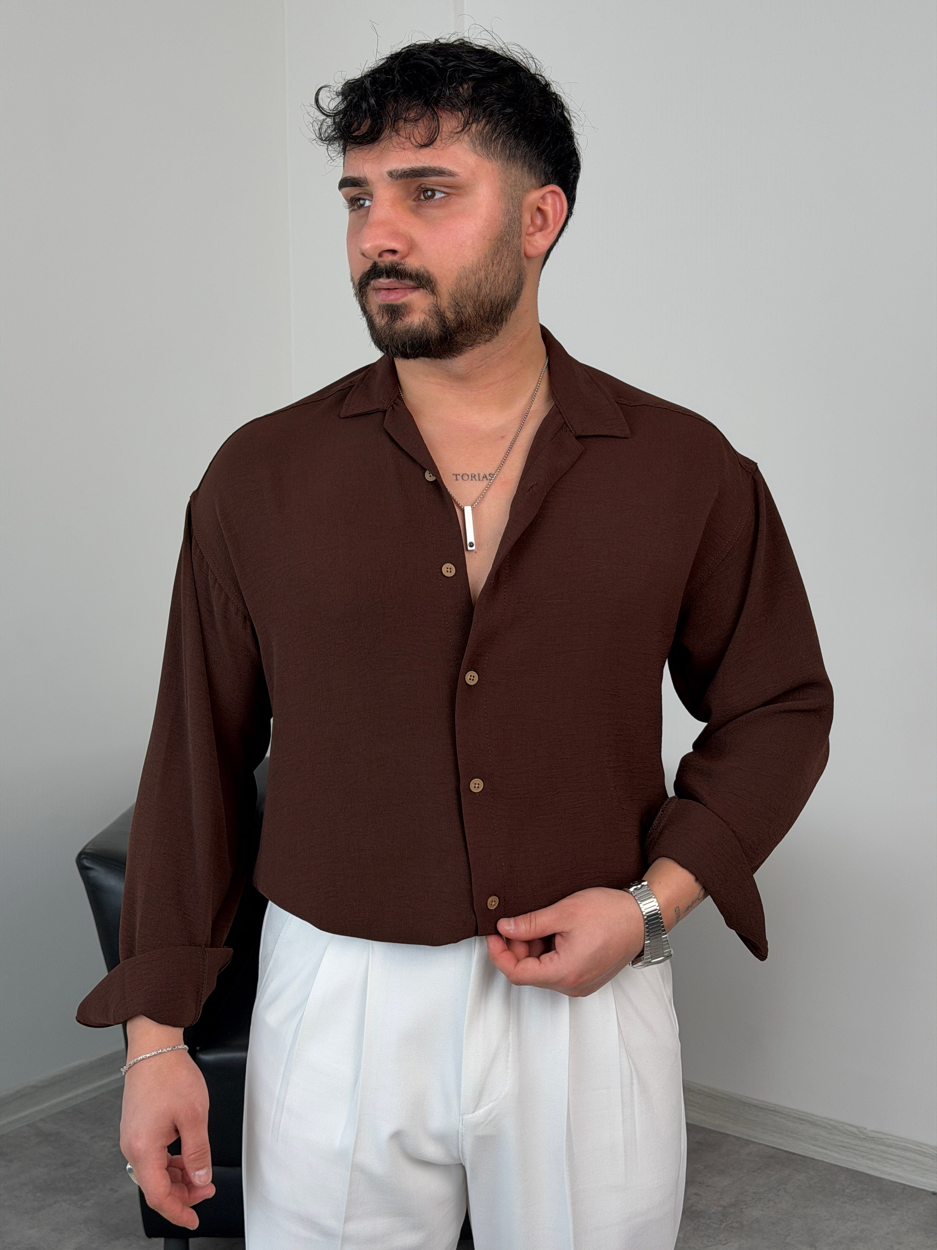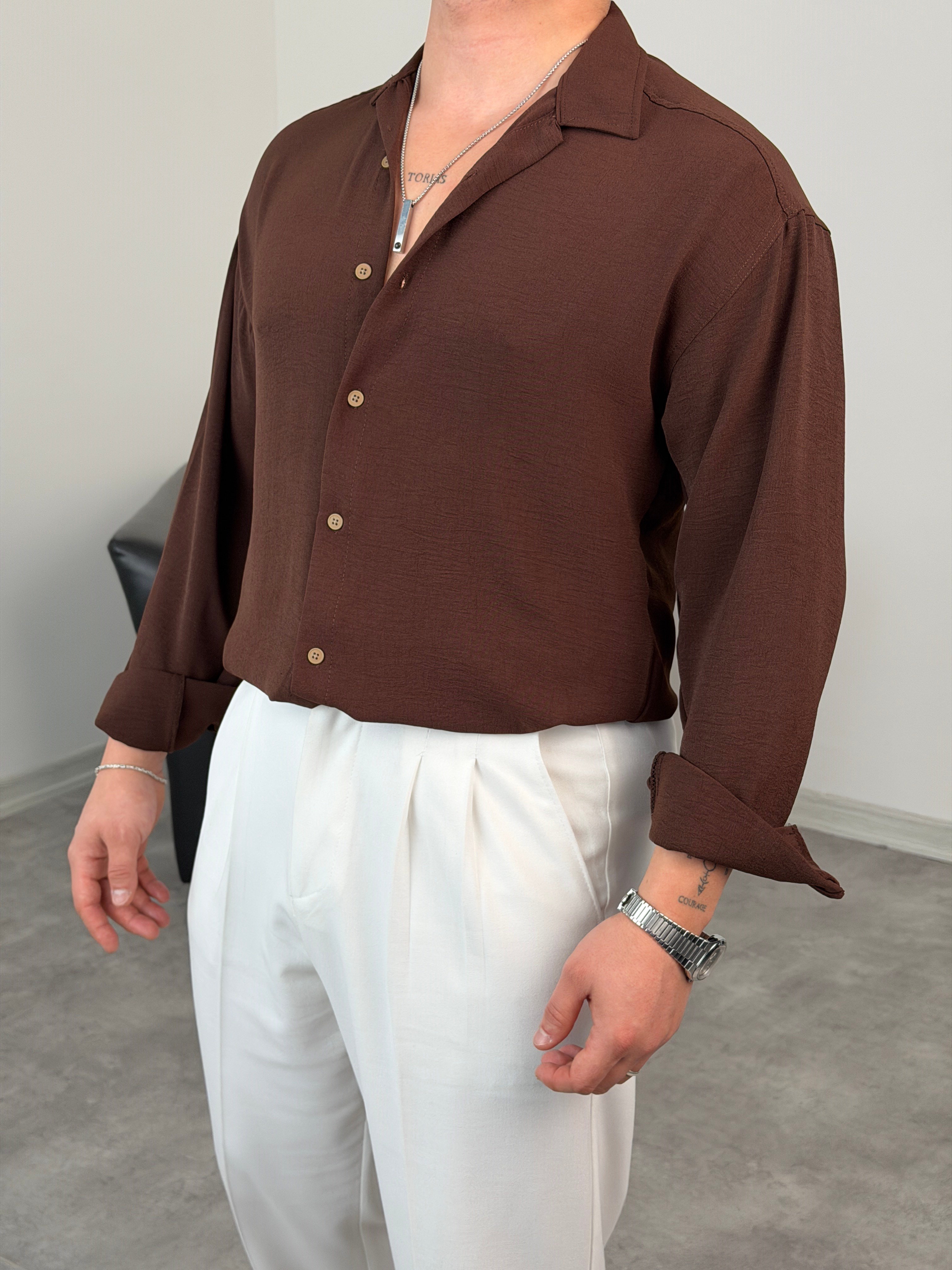 AEROBİN KUMAŞ UZUNKOL PREMİUM GÖMLEK ACI KAHVE