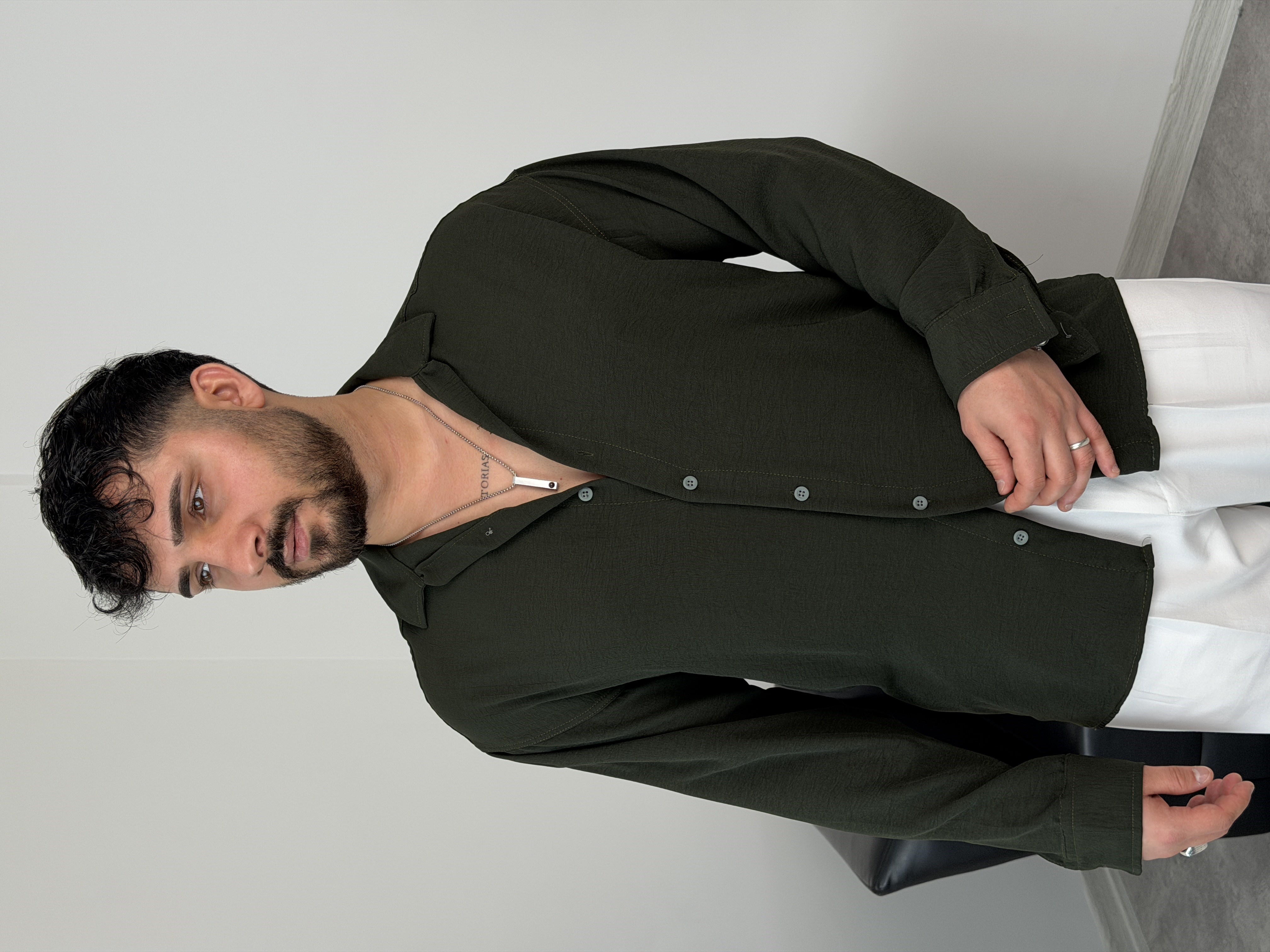 AEROBİN KUMAŞ UZUNKOL PREMİUM GÖMLEK HAKİ YEŞİL