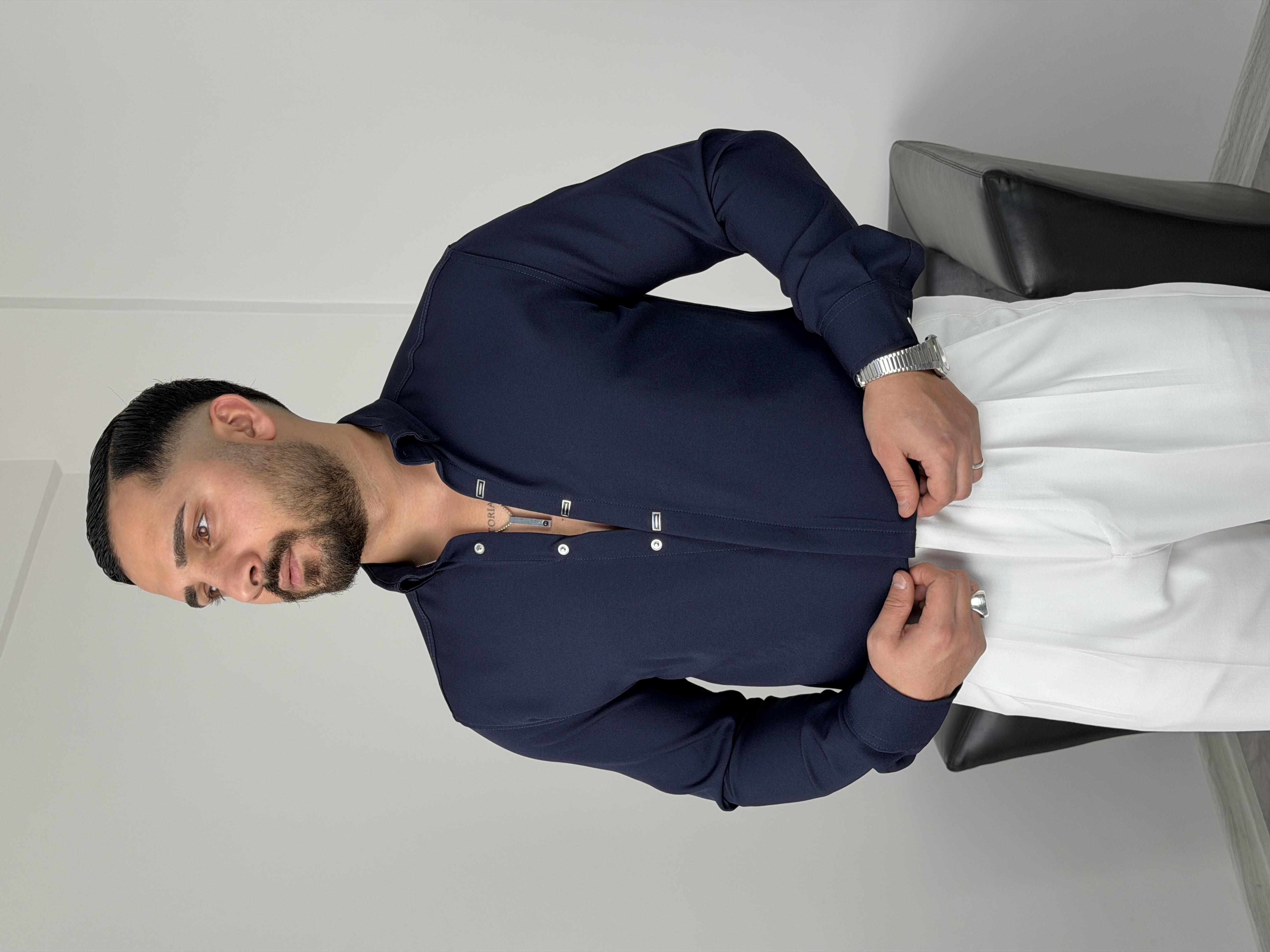AKSESUARLI PREMİUM UZUNKOL GÖMLEK LACİVERT