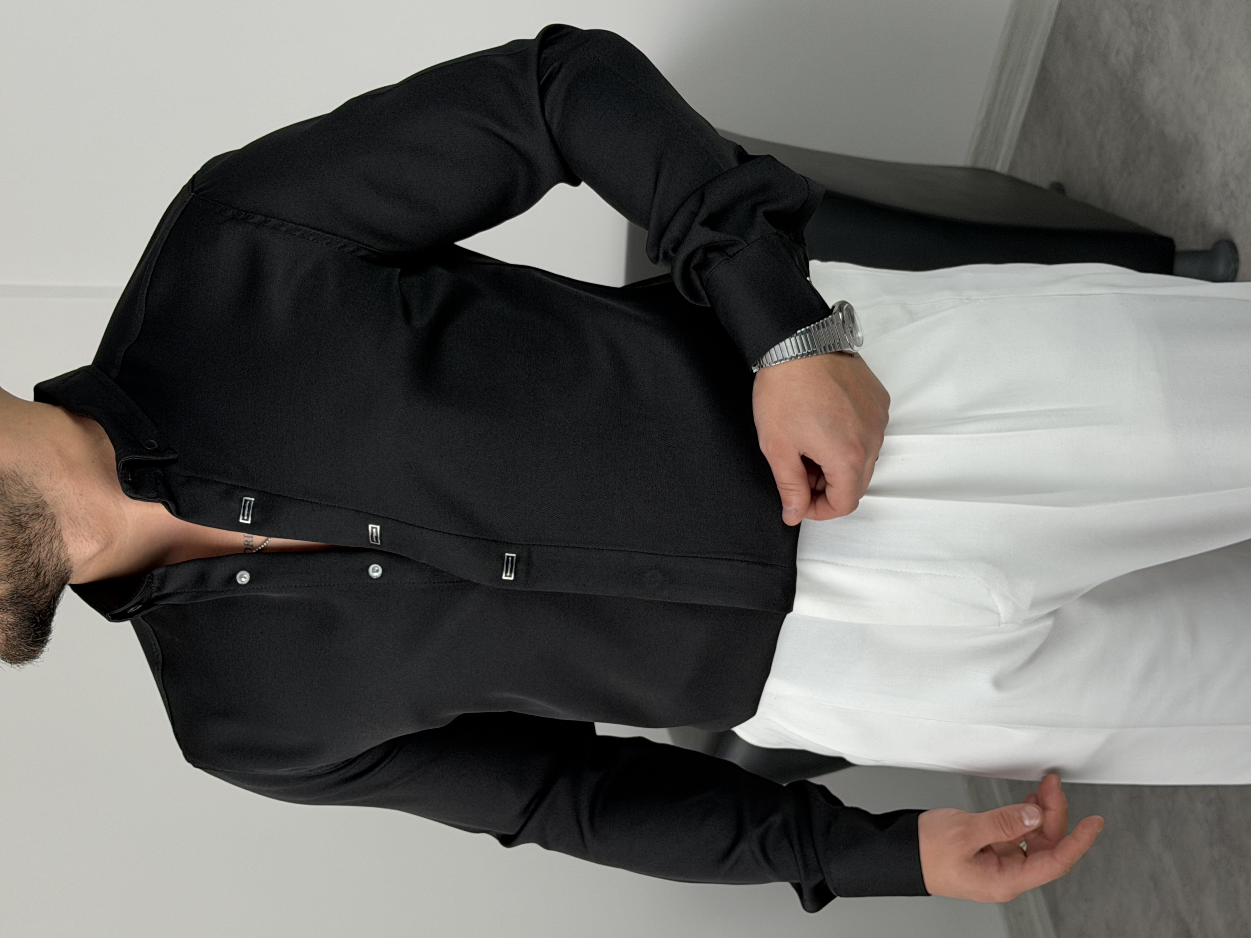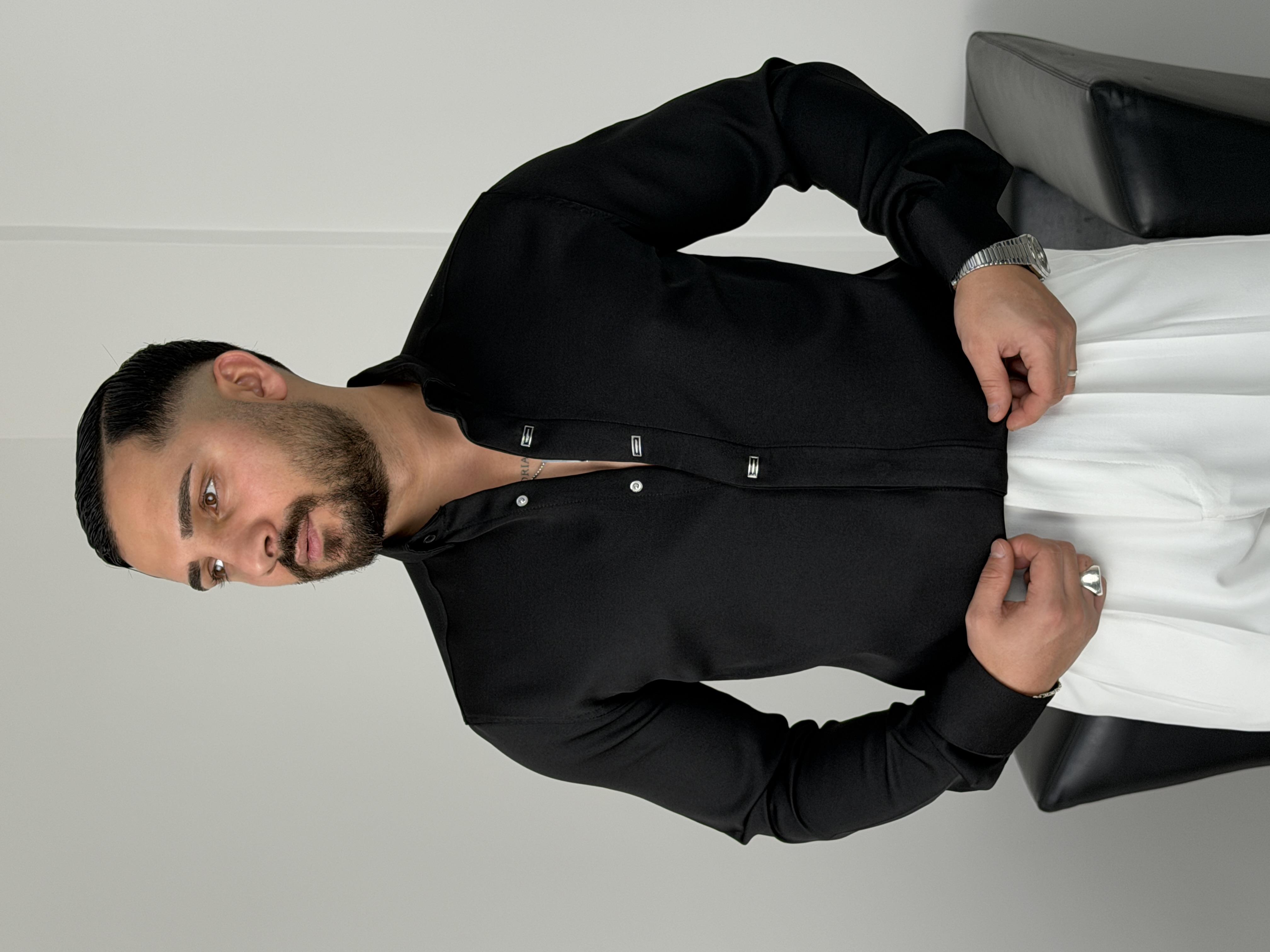 AKSESUARLI PREMİUM UZUNKOL GÖMLEK SİYAH