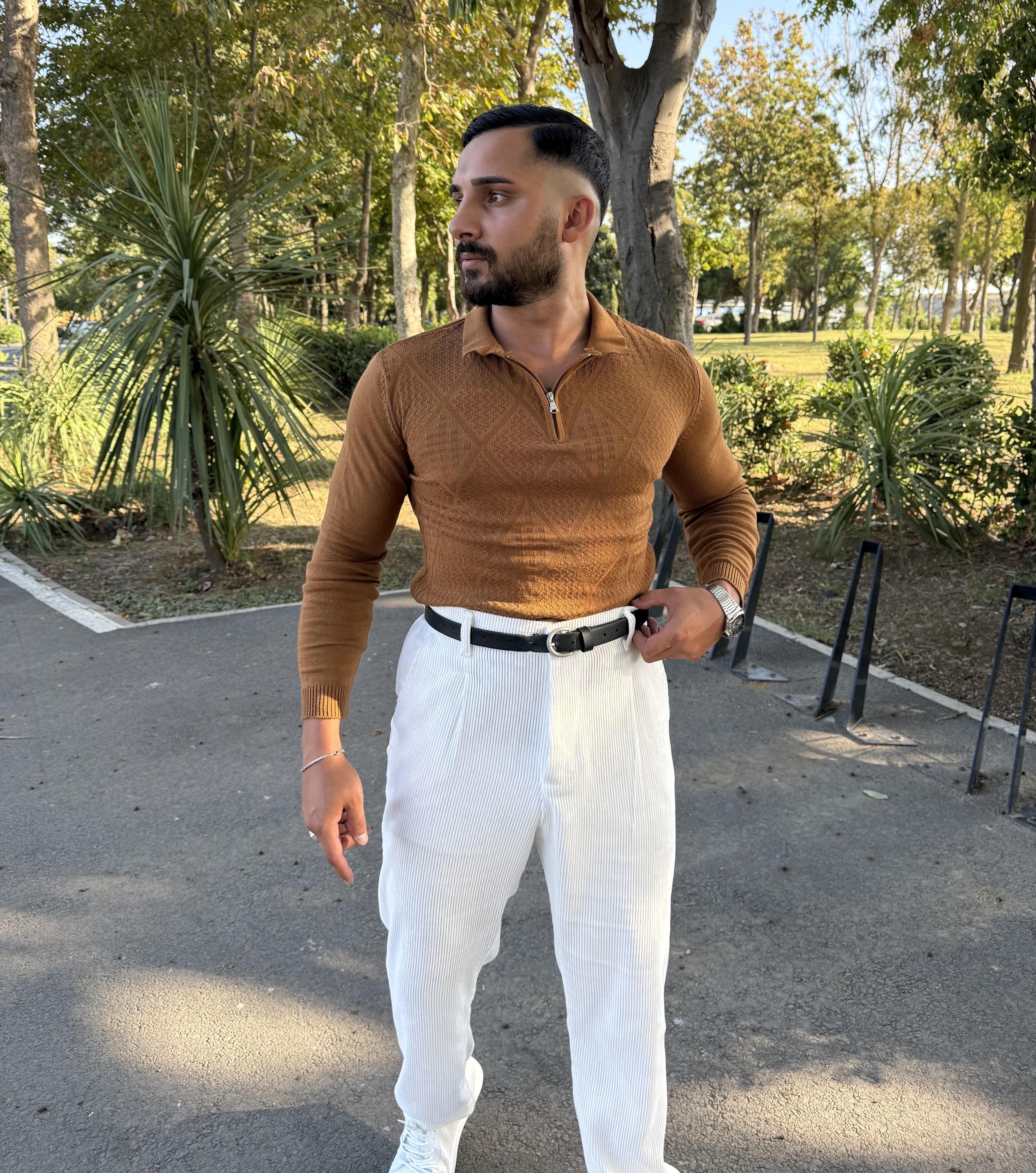 BAKLAVA DESEN YARIM FERMUAR TRİKO KREMİT