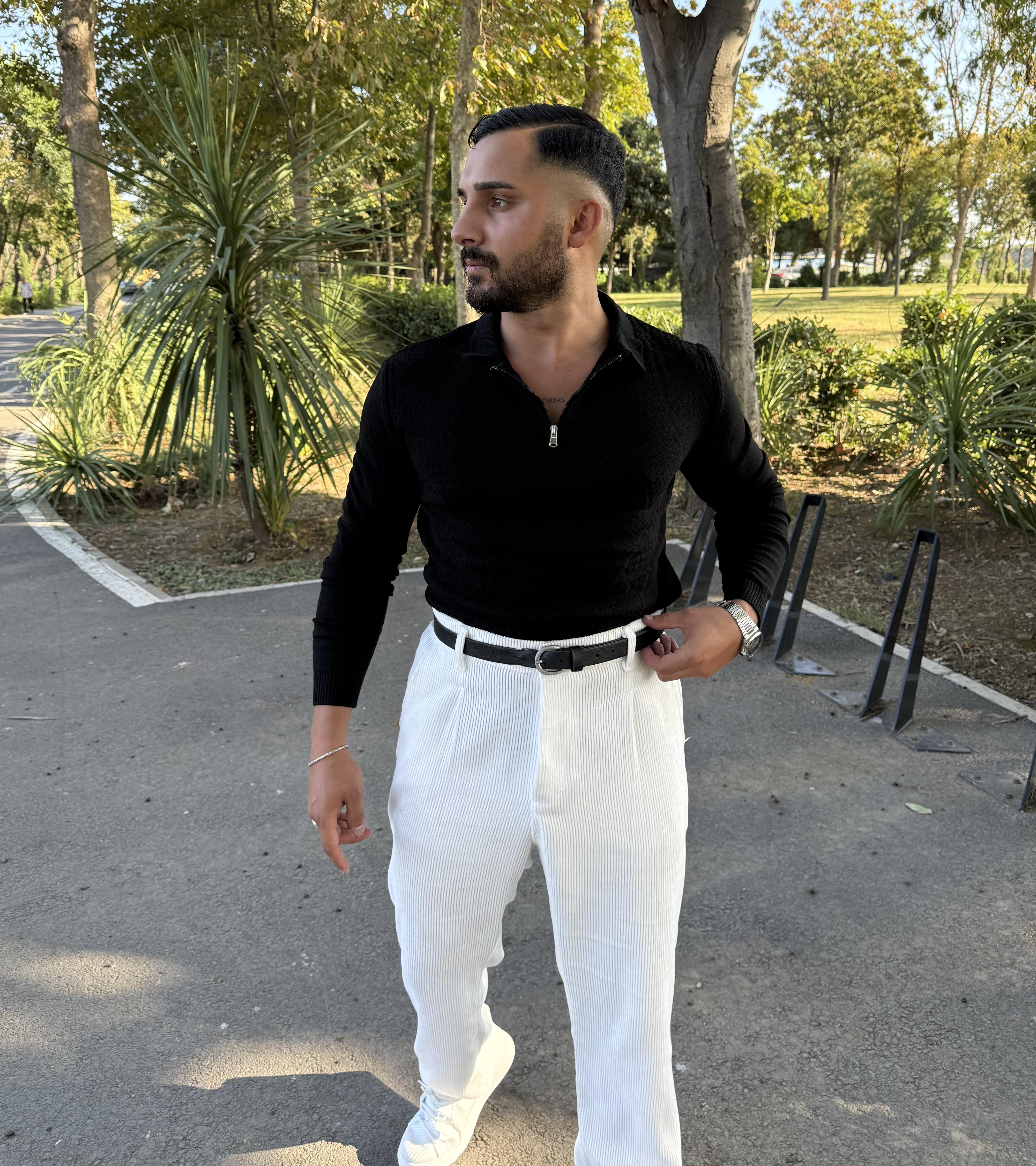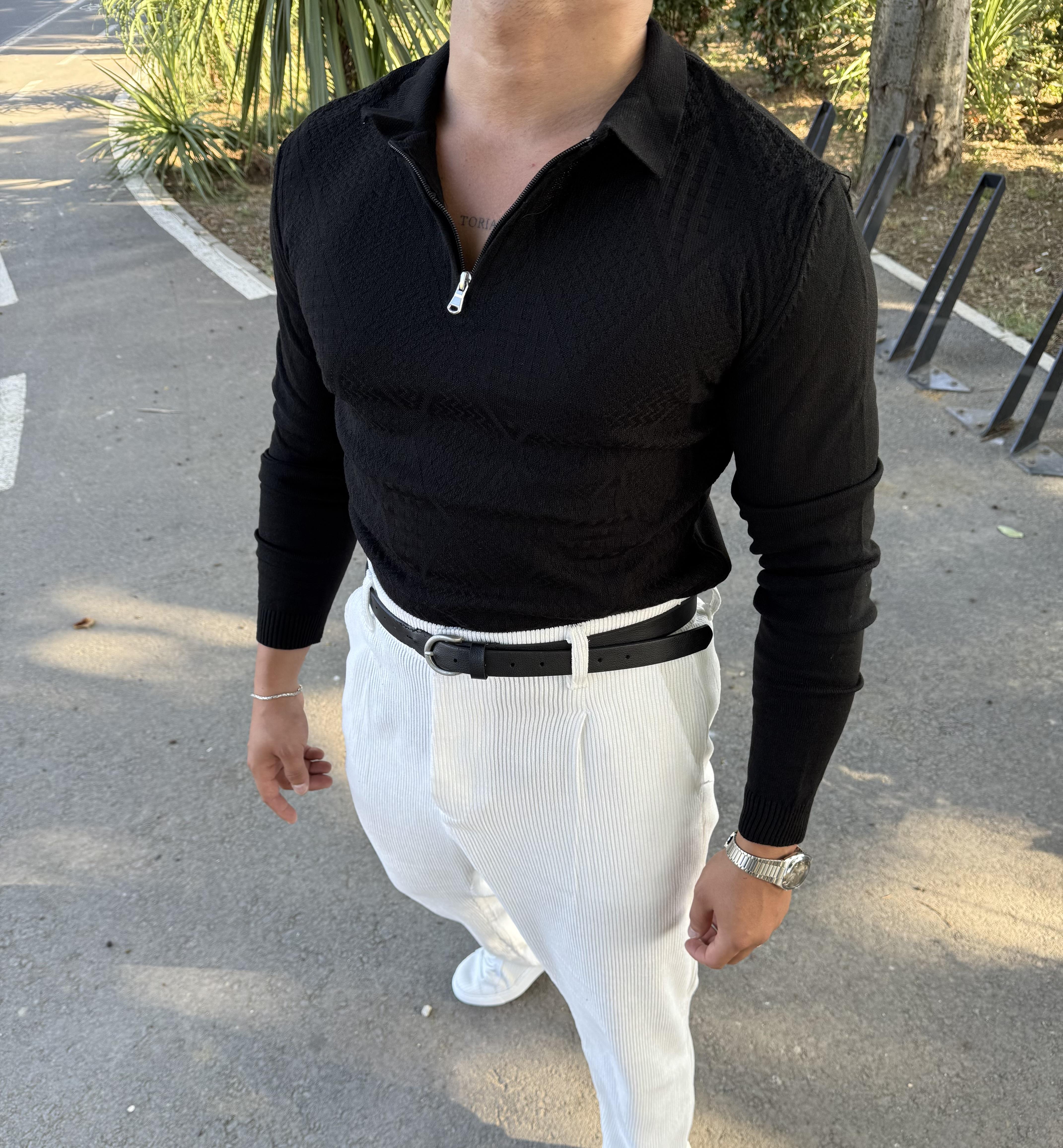 BAKLAVA DESEN YARIM FERMUAR TRİKO SİYAH