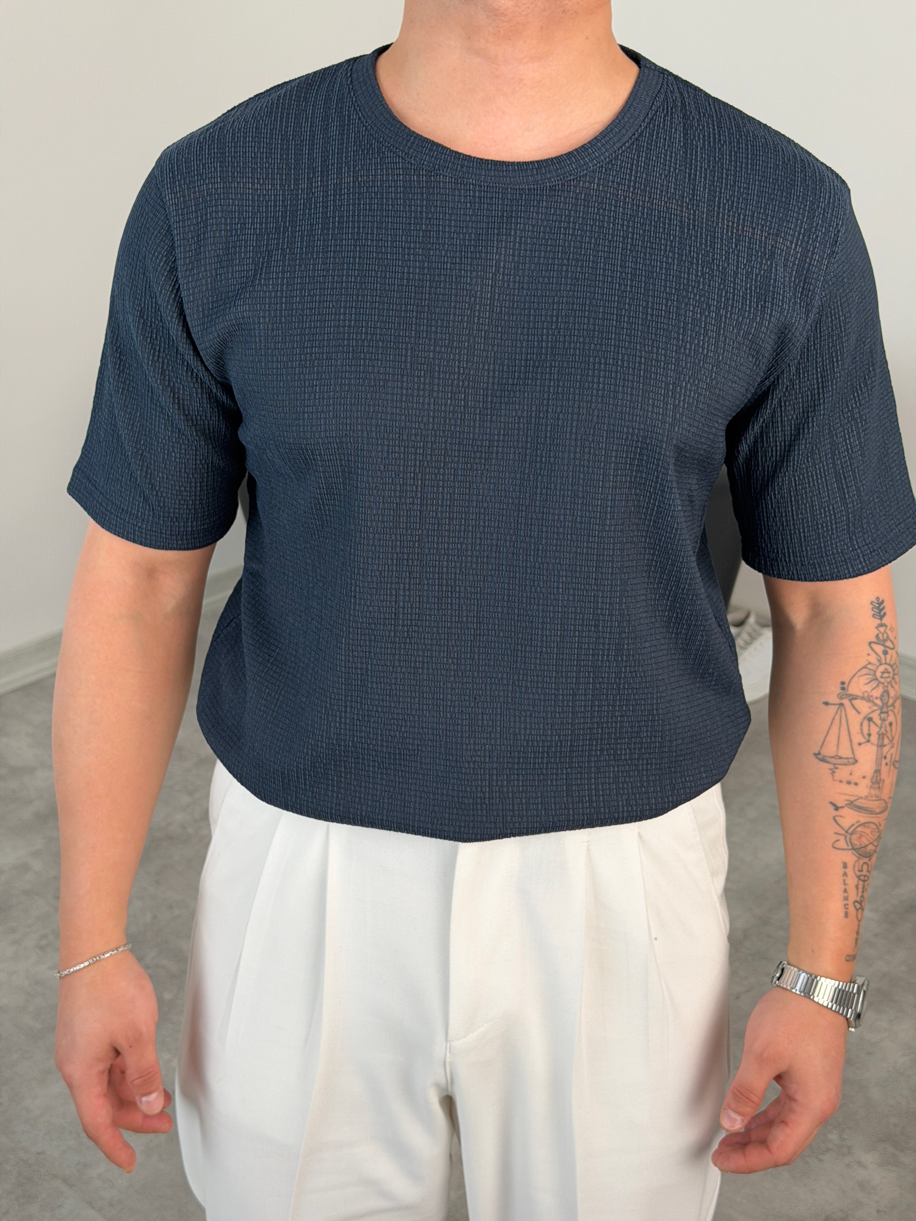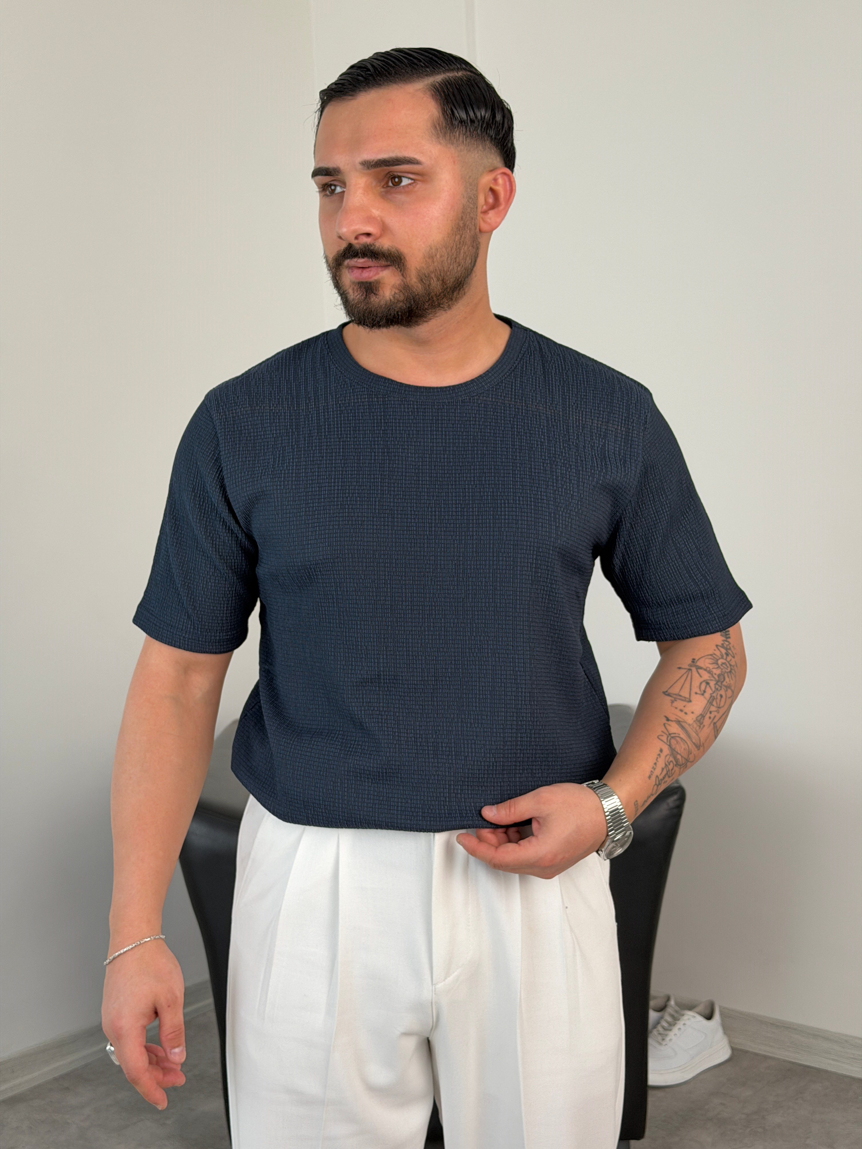 BASİC ÖRME BÜRÜMCÜK TİŞÖRT SİYAH